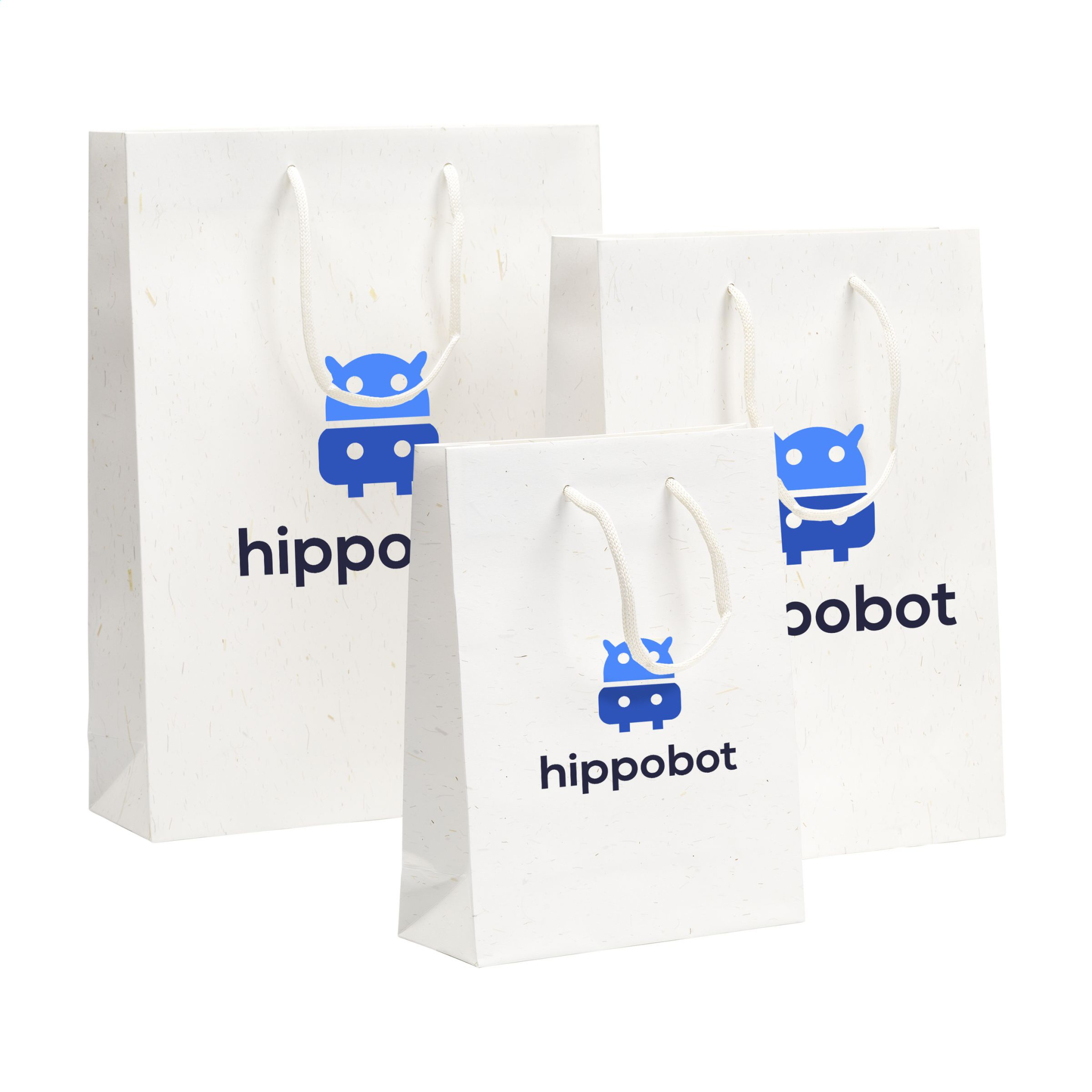 Vau! Tugev ECO-paberist kingikott (suurus L), mis on valmistatud põhukiududega taaskasutatud paberist (180 g/m²). Tänu looduslike kiudude kasutamisele on iga kott unikaalne ja paberil on näha ebatasasusi. See annab tootele kauni loomuliku välimuse. Igal kotil on kaks lühikest, paberist kootud kandeaasa, volditud põhi ja külgvolt. Sobib igasugusteks reklaamieesmärkideks. Selle koti tootmiseks puid maha ei võeta.