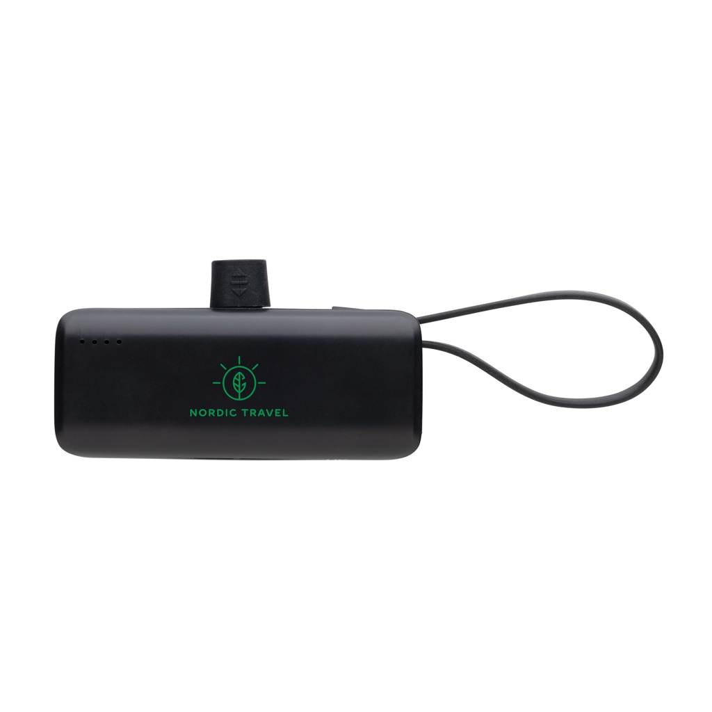 Kaasaskantav taskusuurune akupank, mida on lihtne liikvele kaasa võtta. Toitepangal on kaasas välkpistik, mille saate hõlpsalt oma iPhone'iga ühendada, et otselaadimist alustada. 3000 mAh akupangal on ka integreeritud USB C sisend- ja väljundkaabel, mida saab kasutada USB C esemete laadimiseks ja akupanga uuesti laadimiseks. Selle toitepanga kasutamiseks või laadimiseks pole vaja kaableid kaasas kanda. Valmistatud ringlussevõetud ABS-st ja taaskasutatud TPE-st. Taaskasutatud kogusisaldus: 19% eseme kogukaalust. RCS-sertifikaat tagab taaskasutatud materjalide täielikult sertifitseeritud tarneahela. Pakitud FSC® pakendisse. PVC vaba. Sisend: 5V/2.1A Väljund 5V/2.4A.