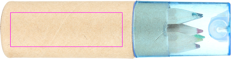 Pappkarp kuue lühikese paksu värvipliiatsi ja sinise läbipaistva plastikkaanega integreeritud teritajaga. Prindime kastile teie logo.