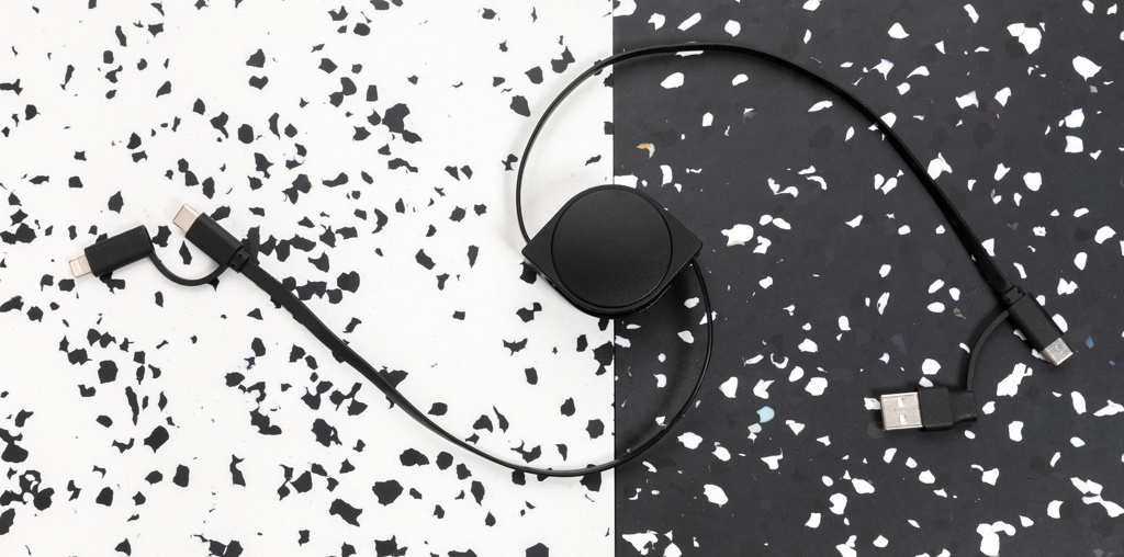 Logotrade meene foto: RCS-standardi taaskasutatud plastik ja TPE 6-in-1 kaabel
