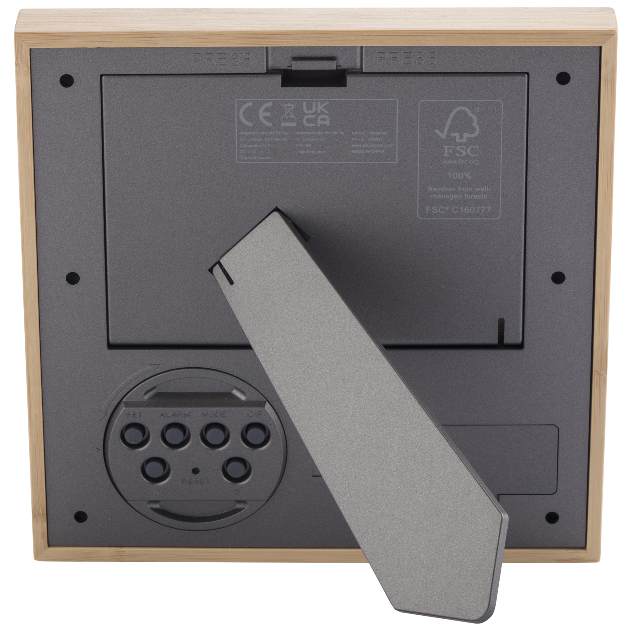 Sasa bambusest pildiraam on stiilne ja funktsionaalne lisa teie koju või kontorisse. Vastutustundlikult hangitud bambusest põhikorpus ja taaskasutatud plastikust tagakorpus õhkab sellest pildiraamist loomulikku elegantsi, edendades samas jätkusuutlikkust. Raamil on LCD-klaas, mis tagab tavarežiimis selge ja terava kellaaja, kuu, kuupäeva, nädalapäeva ja temperatuuri kuvamise. Sellel on ka äratus-/lükkamise funktsioon, mis aitab teil päeva õigel ajal alustada. Sünnipäeva meeldetuletuse režiim võimaldab teil jälgida olulisi kuupäevi, samas kui taimeri režiim sobib suurepäraselt ülesannete või tegevuste ajastamiseks. Lisaks pakub muusika hindamisrežiim teie nautimiseks kuni 7 valikulist laulu. Fotoakna suurus on 127 x 89 mm. Kaasas 2 AA patareid. Tarnitakse jõupaberist kinkekarbi ja kasutusjuhendiga.