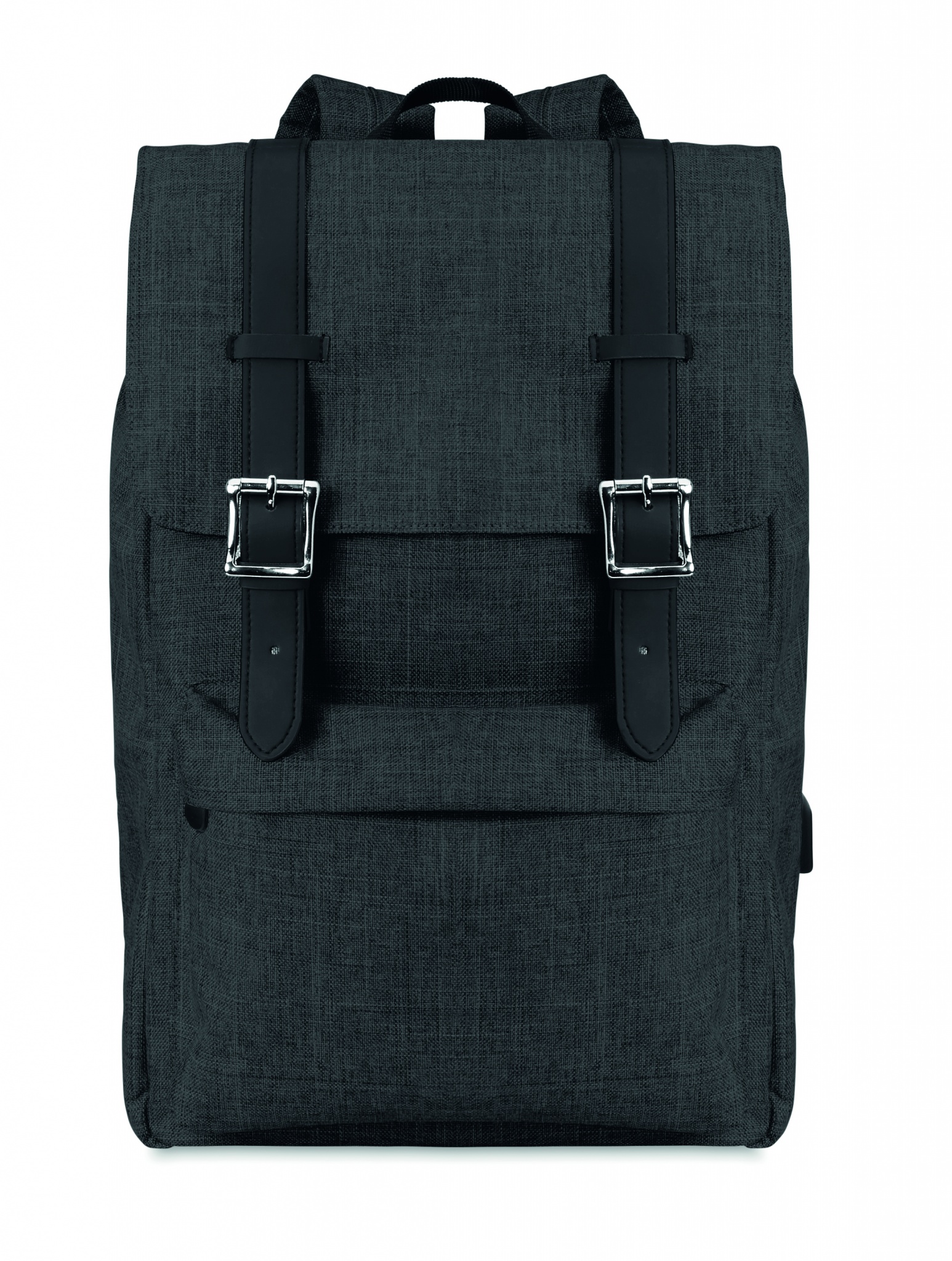 Sülearvuti seljakott 600D 2-toonist polüestrist polsterdatud õlarihmaga, mis sisaldab ühte peamist sisemist sahtlit 15-tollise sülearvuti jaoks ja USB-laadimiskaablit. Kaasas magnetnööbiga kinnis ja üks lukuga esiosa.