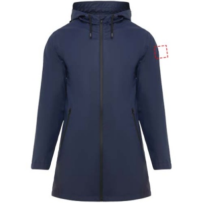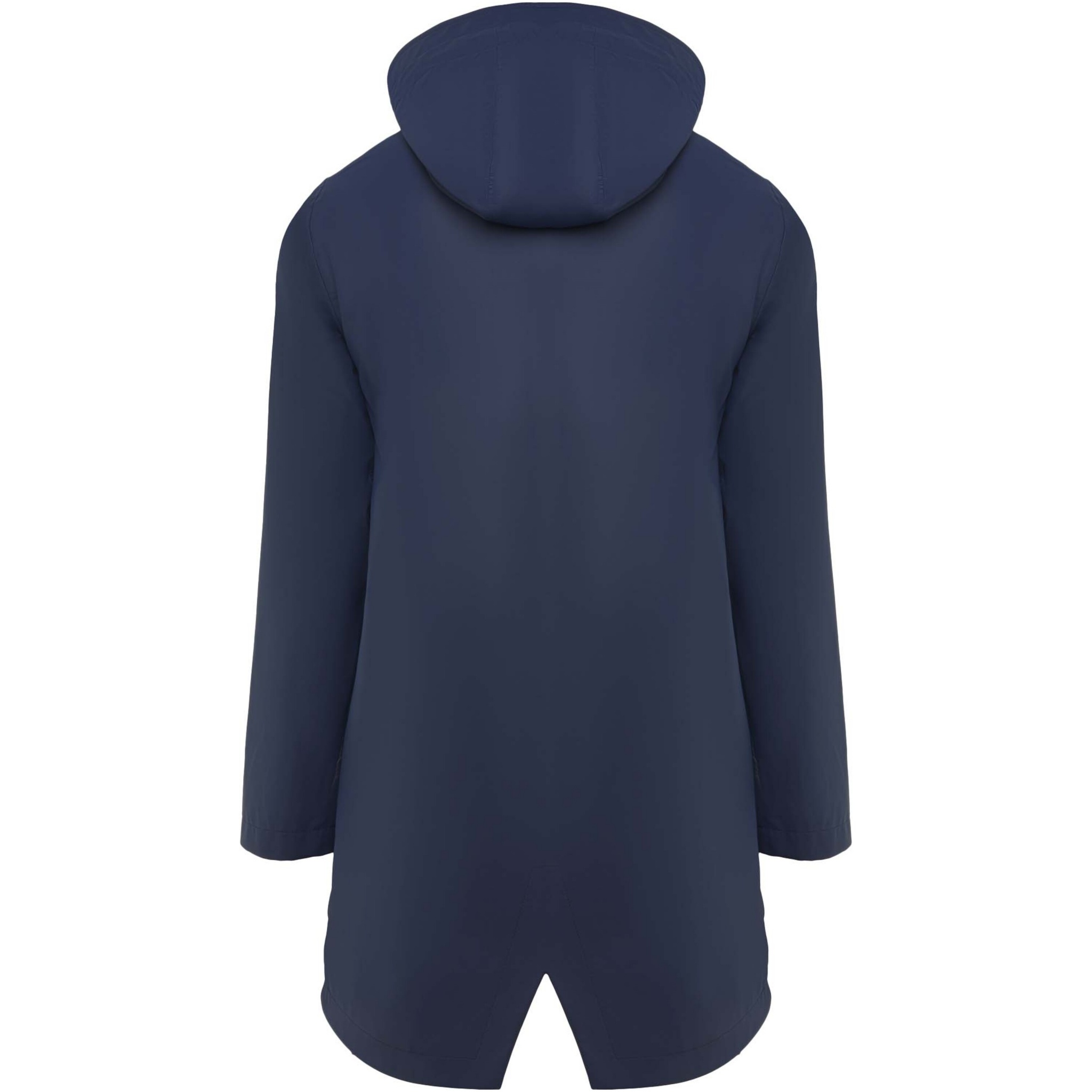 Veekindel vihmamantel naistele. Kapuuts tipuga. Kuumkinnitusega lukud ja õmblused. Must kontrastsed detailid. Kaks lukuga küljetaskut. Tagaäärel lõhik. Eemaldatav etikett. Veekindel. Modell on 179 cm pikk ja kannab suurust S.