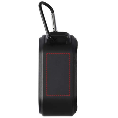 Logo trade reklaamtoote pilt: Solo 3W IPX5 RCS taaskasutatud plastikust päikeseenergia Bluetooth® kõlar karabiiniga