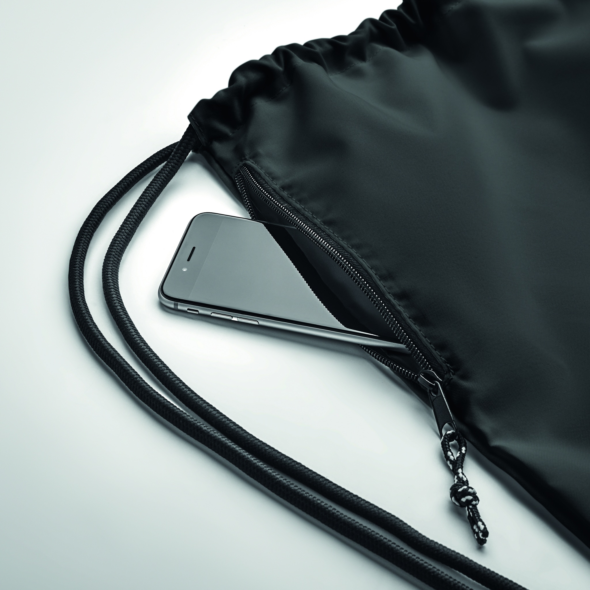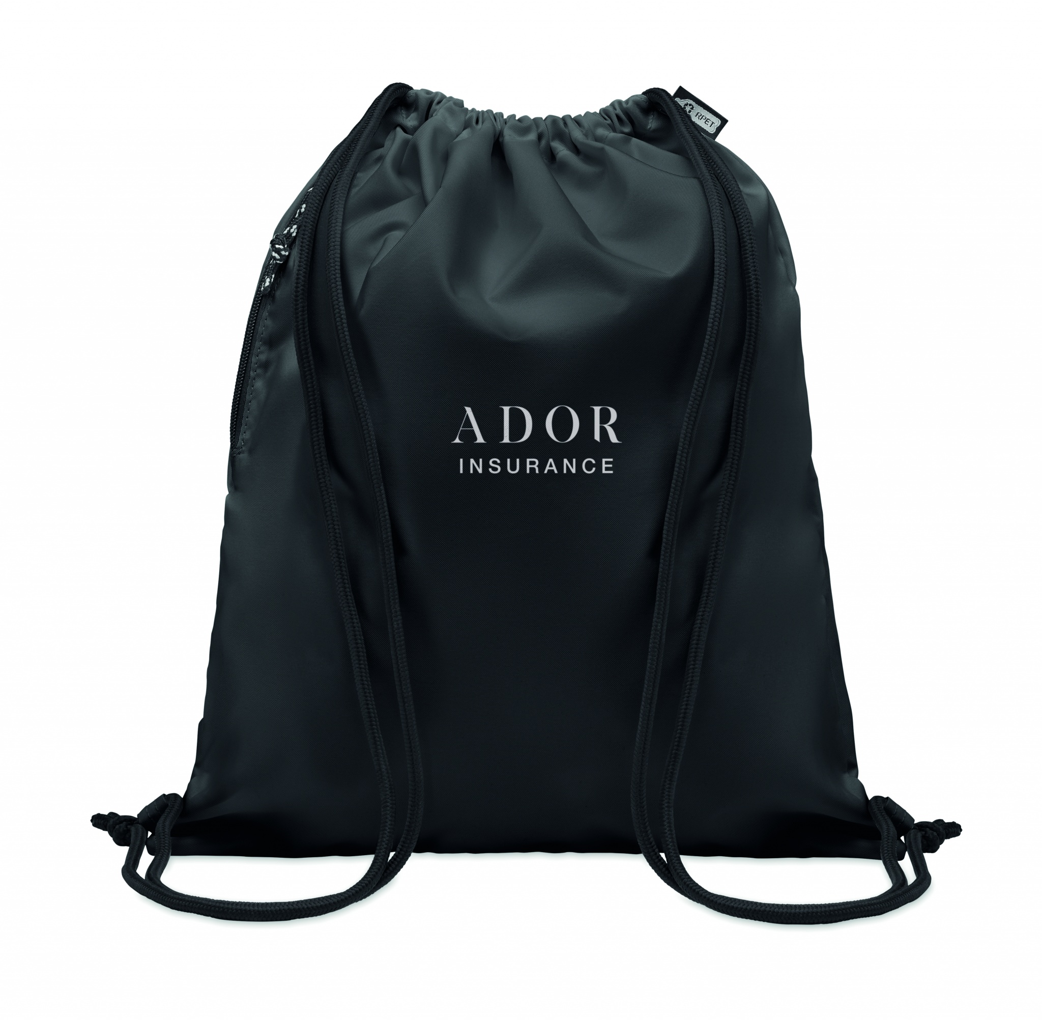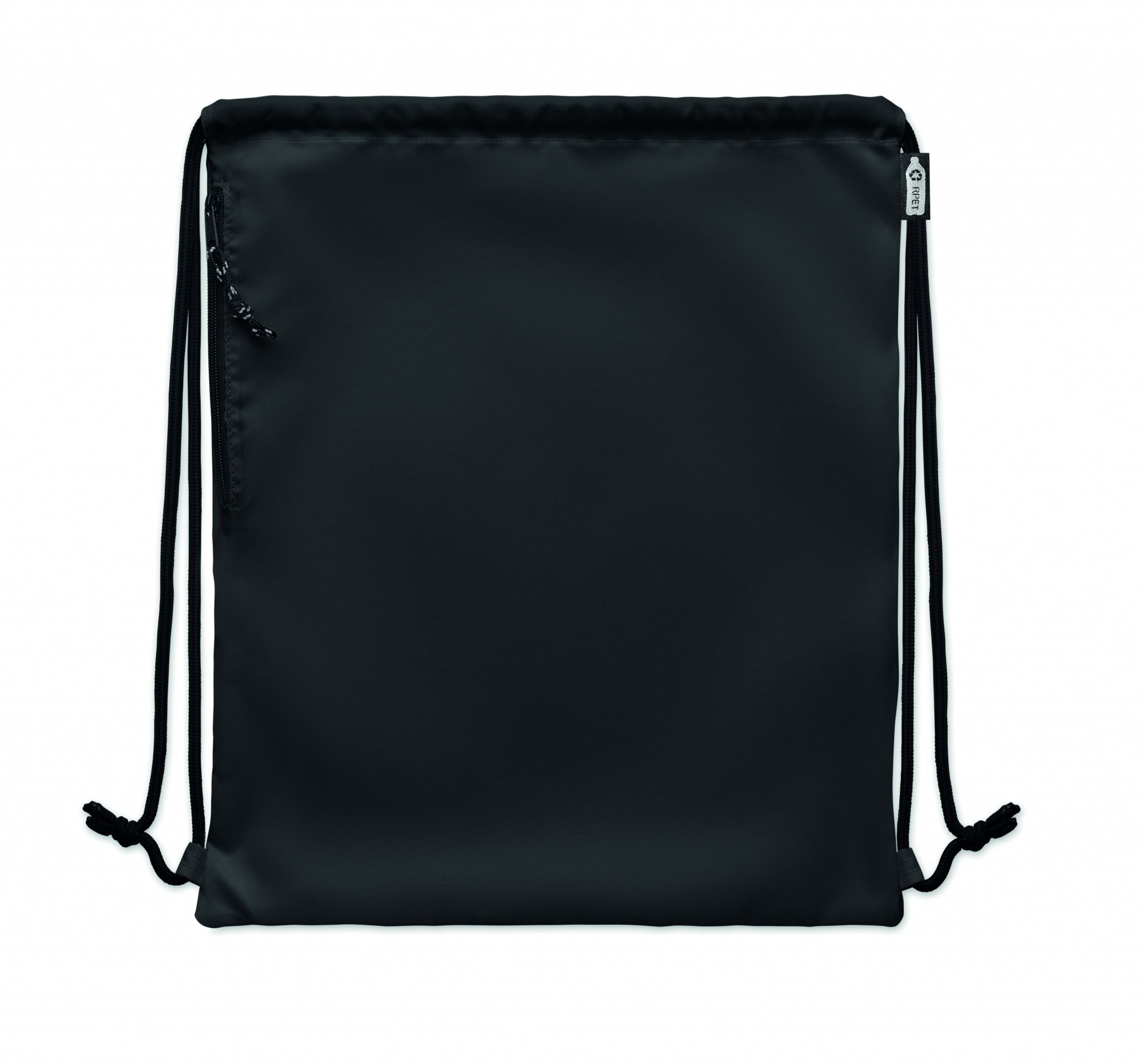 Suur nööriga kott 300D RPET polüestrist külgmise lukuga välistaskuga.