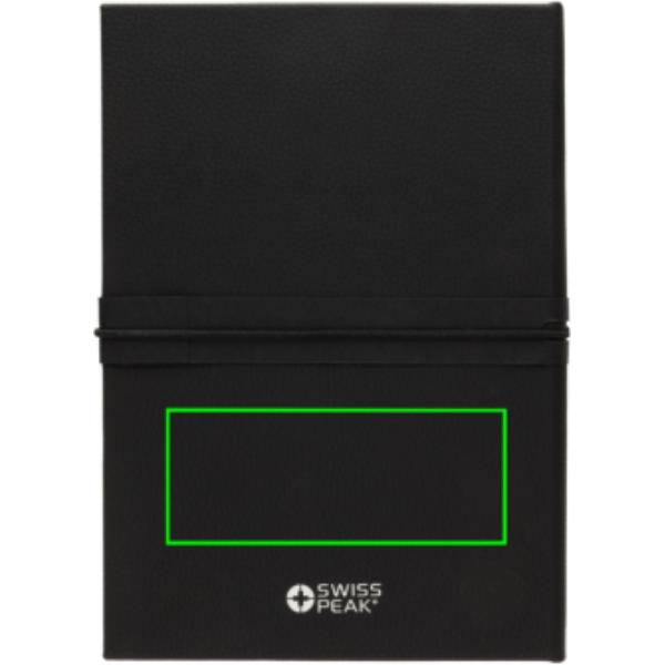 See luksuslik kinkekomplekt sisaldab 480 ml topeltseinaga veepudelit, mis on valmistatud taaskasutatud roostevabast terasest. Komplekti kuulub veel läikiva metallikviimistlusega ja PU-nahast rihmaga esmaklassiline Swiss Peak võtmehoidja, elegantne äriklassi pastapliiats 1000-meetrise kirjutusmahuga ja pehme kattega märkmik, mis on valmistatud taaskasutatud polüestrist (PU). Seest leiate 160 kreemikat lehte, mis on valmistatud taaskasutatud paberist. Kõik tooted on RCS-sertifikaadiga, mis tagab taaskasutatud materjalide täielikult kontrollitud tarneahela.
