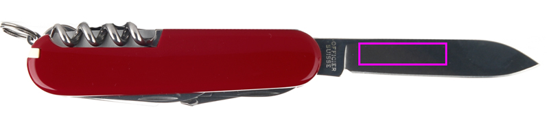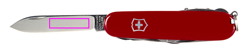 omadused: 1. suur tera 2. küüneviil nael: 3 - seade küünte puhastamiseks 4. korgitser 5. konserviavaja koos: 6. - väike kruvikeeraja 7. avaja korgid koos: 8. - kruvikeeraja 9. - traadieemaldaja 10 varras 11. võtmehoidja 12. pintsetid 13. hambaork.