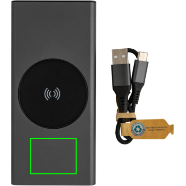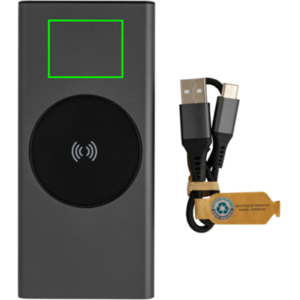 Ülikiire laadimise aku, mis on valmistatud RCS-i (Recycled Claim Standard) sertifitseeritud taaskasutatud alumiiniumist ja ABS-ist. Taaskasutatud kogusisaldus: 28% kauba kogukaalust. RCS-sertifikaat tagab taaskasutatud materjalide täielikult sertifitseeritud tarneahela. Alumiinium ei kaota ringlussevõtu käigus oma omadusi ja seda saab ringlusse võtta lõputult. Akupank sisaldab kauakestvat A-klassi 10 000 mAh liitiumpolümeerakut. C-väljundport toetab kiiret laadimist kuni 18 W ja ka kiiret uuesti laadimist 3 tunni jooksul. Juhtmeta laadija toetab juhtmevaba laadimist kuni 10 W. Toiteindikaatorid näitavad järelejäänud energiataset, nii et teate alati, millal laadida. Toode ja tarvikud 100% PVC-vaba. Sisaldab C-tüüpi laadimiskaablit, mis on valmistatud RCS-sertifikaadiga taaskasutatud alumiiniumist, TPE-st ja PET-st. Pakitud FSC® segupakendisse. USB väljund 5/3A, 9V/2A. 12V/1,5A. C-tüüpi väljund: 5V/3A, 9V/2A, 12V/1,5A. C-tüüpi sisend: 5V/3A, 9V/2A, 12V/1,5A. Mikro-USB sisend: 5V/2A, 9V/2A, 12V/1,5A.