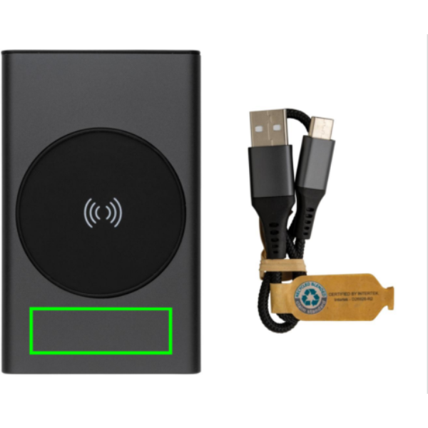 Powerbank on valmistatud RCS (Recycled Claim Standard) sertifitseeritud taaskasutatud alumiiniumist ja ABS-ist. Kogu taaskasutatud sisaldus: 31% kauba kogukaalust. RCS-sertifikaat tagab taaskasutatud materjalide täielikult sertifitseeritud tarneahela. Alumiinium ei kaota ringlussevõtu käigus oma omadusi ja seda saab ringlusse võtta lõputult. Akupank sisaldab kauakestvat A-klassi 5000 mAh liitiumpolümeerakut. Juhtmeta laadija toetab juhtmevaba laadimist kuni 5W. Toiteindikaatorid näitavad järelejäänud energiataset, nii et teate alati, millal laadida. Toode ja tarvikud 100% PVC-vaba. Sisaldab C-tüüpi laadimiskaablit, mis on valmistatud RCS-sertifikaadiga taaskasutatud alumiiniumist, TPE-st ja PET-st. Pakitud FSC® segupakendisse. USB-väljund 5/2,4A, C-tüüpi väljund: 5V/2,4A. C-tüüpi sisend: 2,4A. Mikro-USB sisend: 5V/2A.