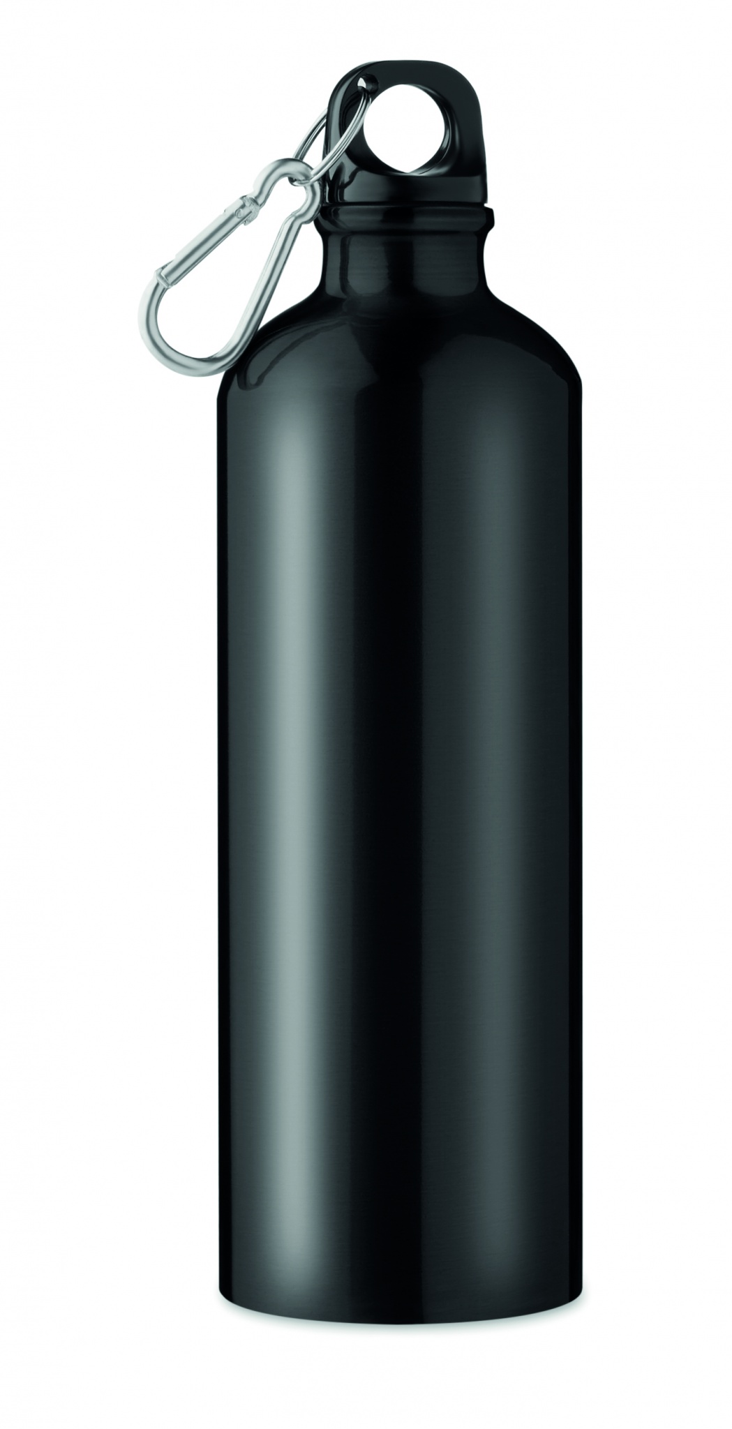 Ühekordse seinaga 750 ml alumiiniumist pudel koos karabiiniga, kohandatava trükilahendusega, Must