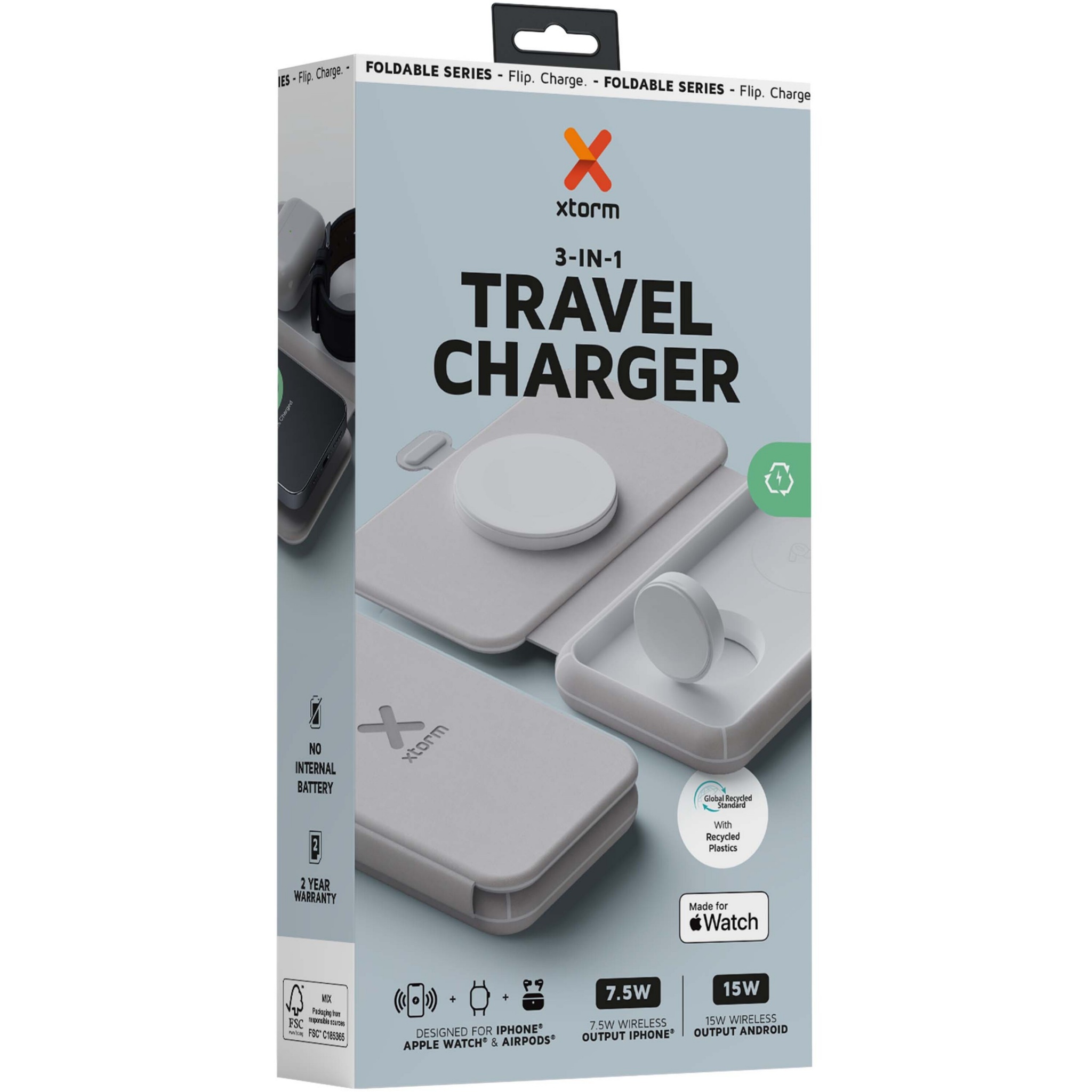 Xtorm XWF31 15 W kokkupandav kolm-ühes juhtmevaba reisilaadija, Hall