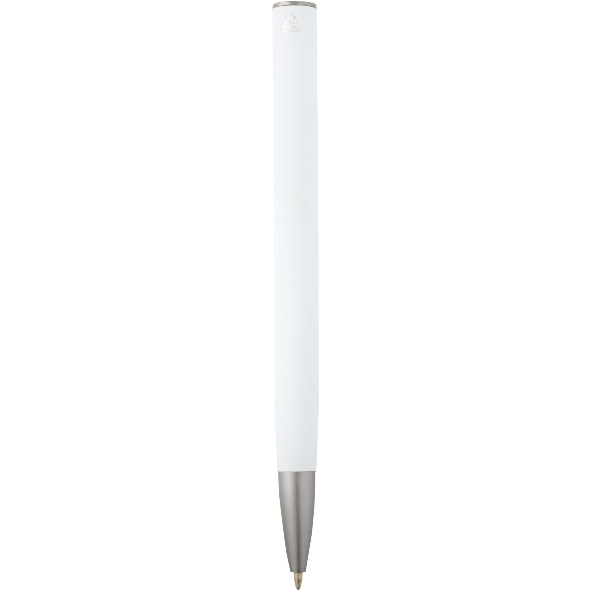 Ziguur taaskasutatud alumiiniumist pastapliiats (must tint), Valge