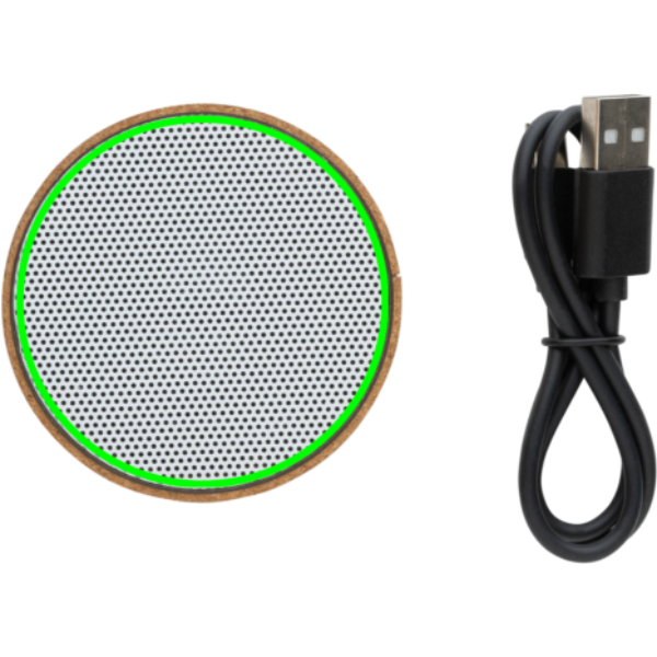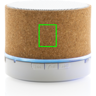 3W langaton kaiutin valmistettuna FSC® 100% korkkikotelolla. Kaiuttimisessa on 400mAh:n akku, joka takaa jopa 3 tunnin toistoajan sekä BT5.1 sulavaa yhteyttä ja kirkasta ääntä varten. Kaiuttimessa on sisäänrakennettu valo, joka syttyy, kun laite käynnistetään. Toimintaetäisyys jopa 10 metriä. Mikrofonilla ja vastaustoiminnolla. Pakattu FSC®-sekoituksesta valmistettuun pakkaukseen. RCS-sertifioitu kierrätetystä TPE:stä valmistettu latauskaapeli. Tuote ja lisätarvikkeet 100% PVC-vapaita.