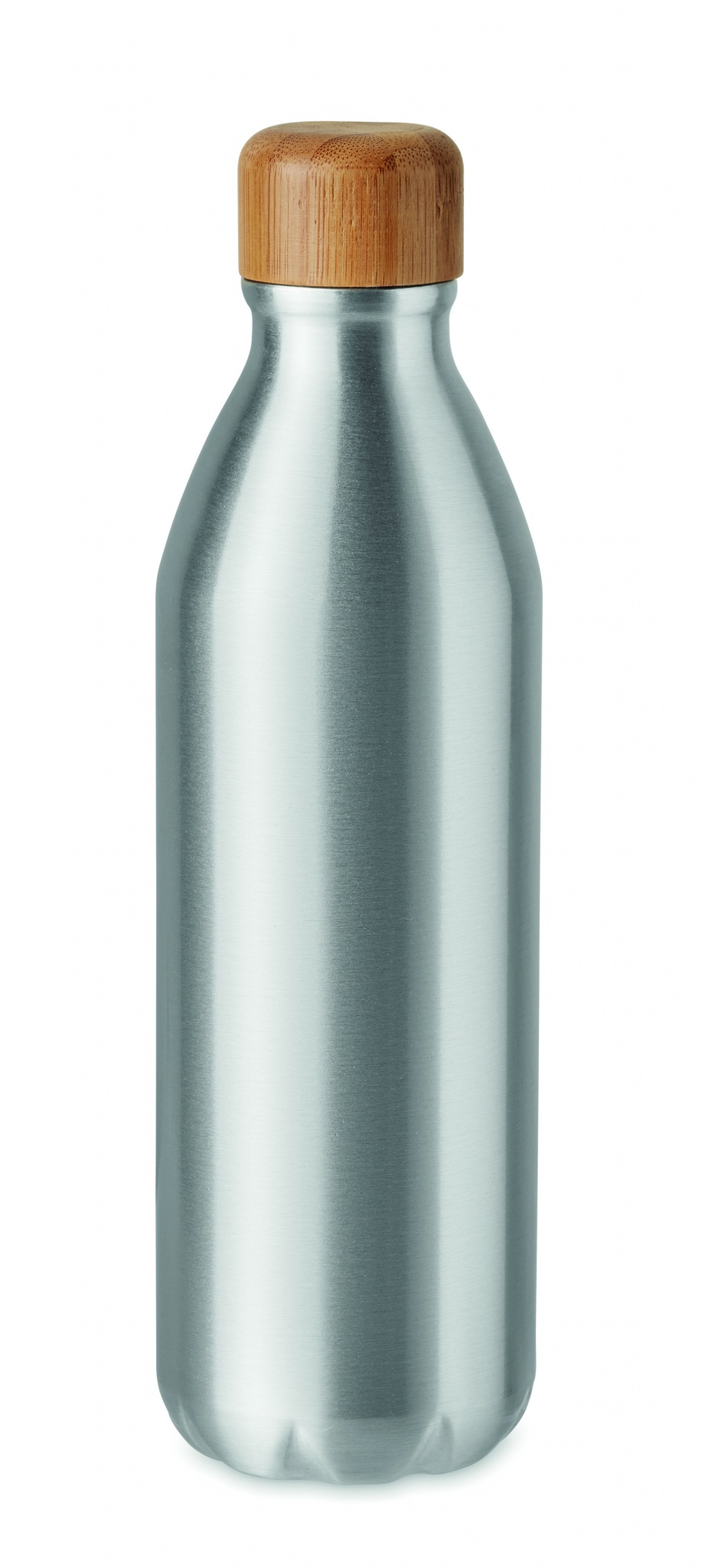 Single wall Aluminium bottle with bamboo. Capacity: 550 ml.