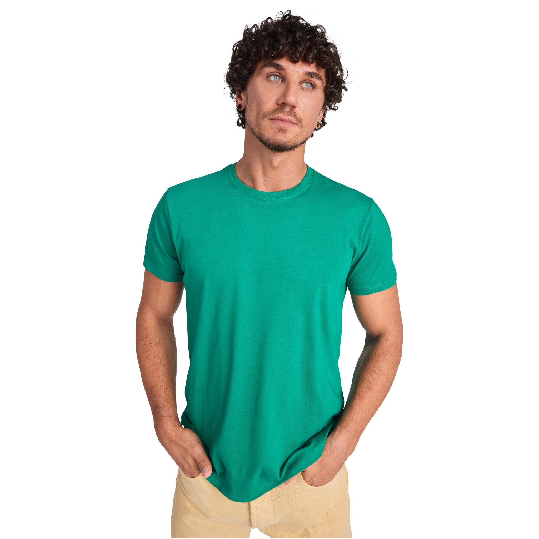 Tuubikudottu lyhythihainen t-paita. 1x1 resorireunainen pyöreä pääntie, jossa sisäpuoliset peitetyt saumat.