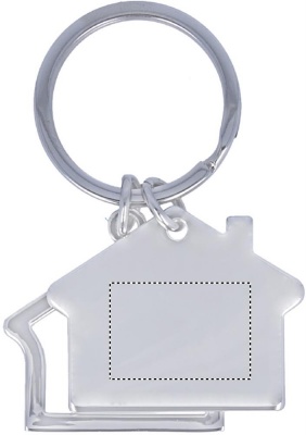 Metallinen talon muotoinen avaimenperä.