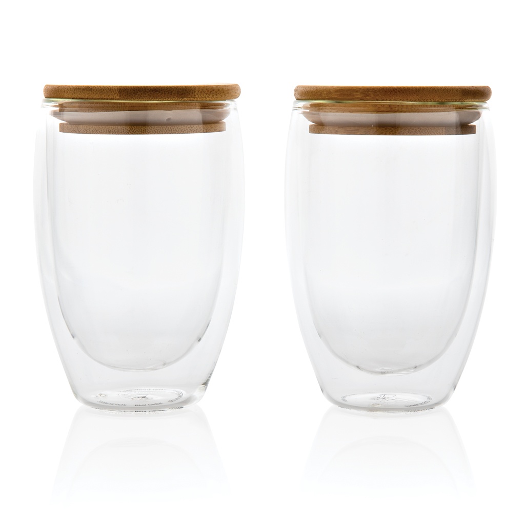 Logo trade mainoslahjat tuotekuva: Borosilikaattilasinen lasi bambukannella 350ml 2kpl