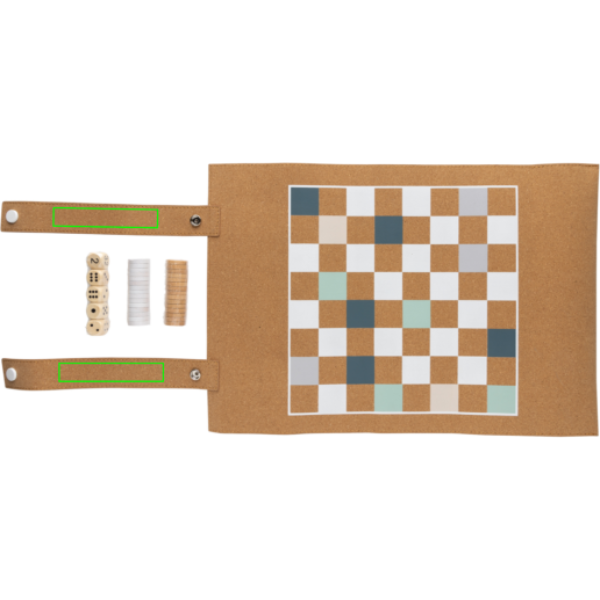 Tämä taitettava backgammon- ja tammipelisetti on moderni korkealaatuinen lautapelisetti ruskealla FSC® korkkisella pelipinnalla ja leikkisillä väreillä. Pelilauta on taitettava helppoa säilytystä ja kuljetusta varten, ja sen mukana toimitetaan pelinappulat ja nopat. Klassisen muotoilun ja kestävien pelinappuloiden ansiosta se on mainio vaihtoehto kaikille, jotka rakastavat näitä klassisia lautapelejä ja haluavat helposti kuljetettavan setin.
