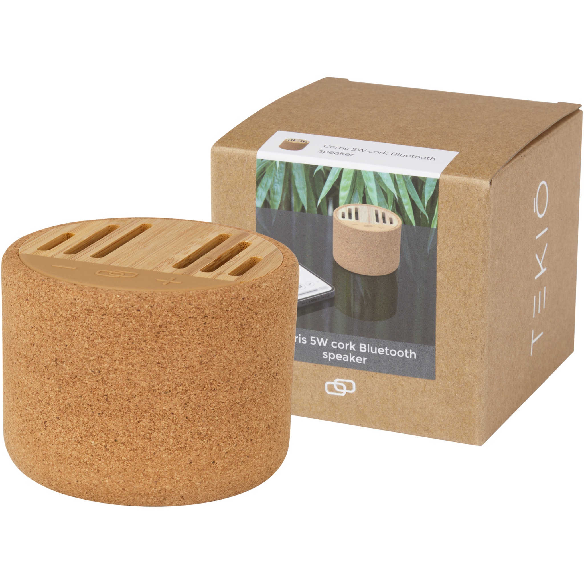 Korkista ja bambusta valmistettu Cerris 5 W:n Bluetooth®-kaiutin on akustisesti laadukas! Kaiuttimen runko ja kehikko ovat valmistettu aidosta korkista ja bambusta. 5 W:n liitännän ansiosta tässä kompaktissa kaiuttimessa on erinomainen äänenlaatu ja siinä on puheluihin vastaamistoiminto, kun puhelimesta soitetaan musiikkia. Sisäänrakennettu 900 mAh:n akku mahdollistaa jopa 3 tunnin käytön maksimiäänenvoimakkuudella yhdellä latauksella. Latausaika 0–100 %:iin on 2 tuntia. Bluetooth® 5.1, kuuluvuus jopa 10 metriä. Mukana 30 cm:n Type-C-latauskaapeli. Toimitetaan korkealaatuisessa voimapaperipakkauksessa. Koska korkki ja bambu ovat luonnosta peräisin olevia materiaaleja, tuotteen väri ja koko saattavat vaihdella, mikä saattaa vaikuttaa painatukseen.