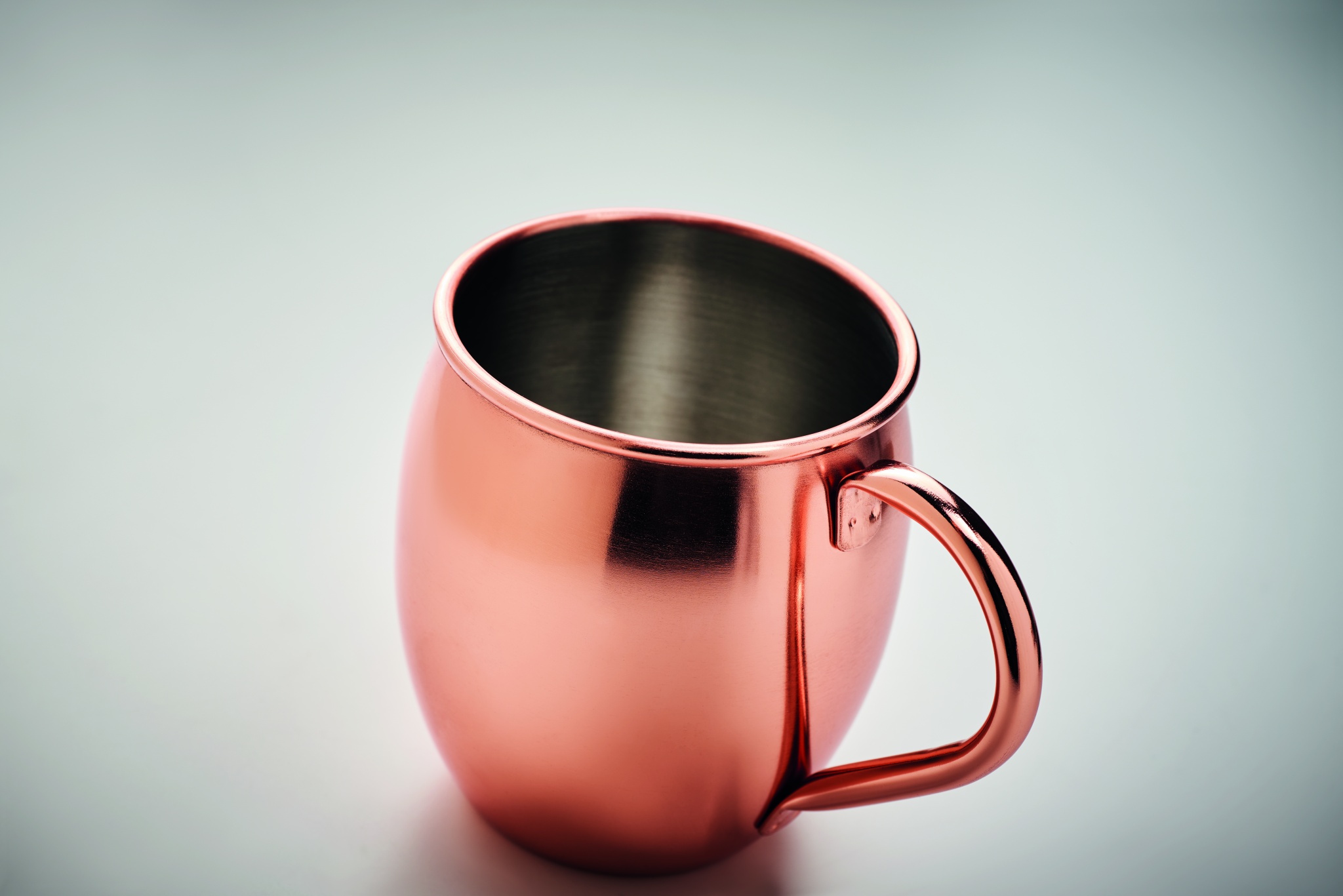 Ruostumattomasta teräksestä valmistettu 400 ml cocktail-muki mattapintaisella kuparipinnoitteella.