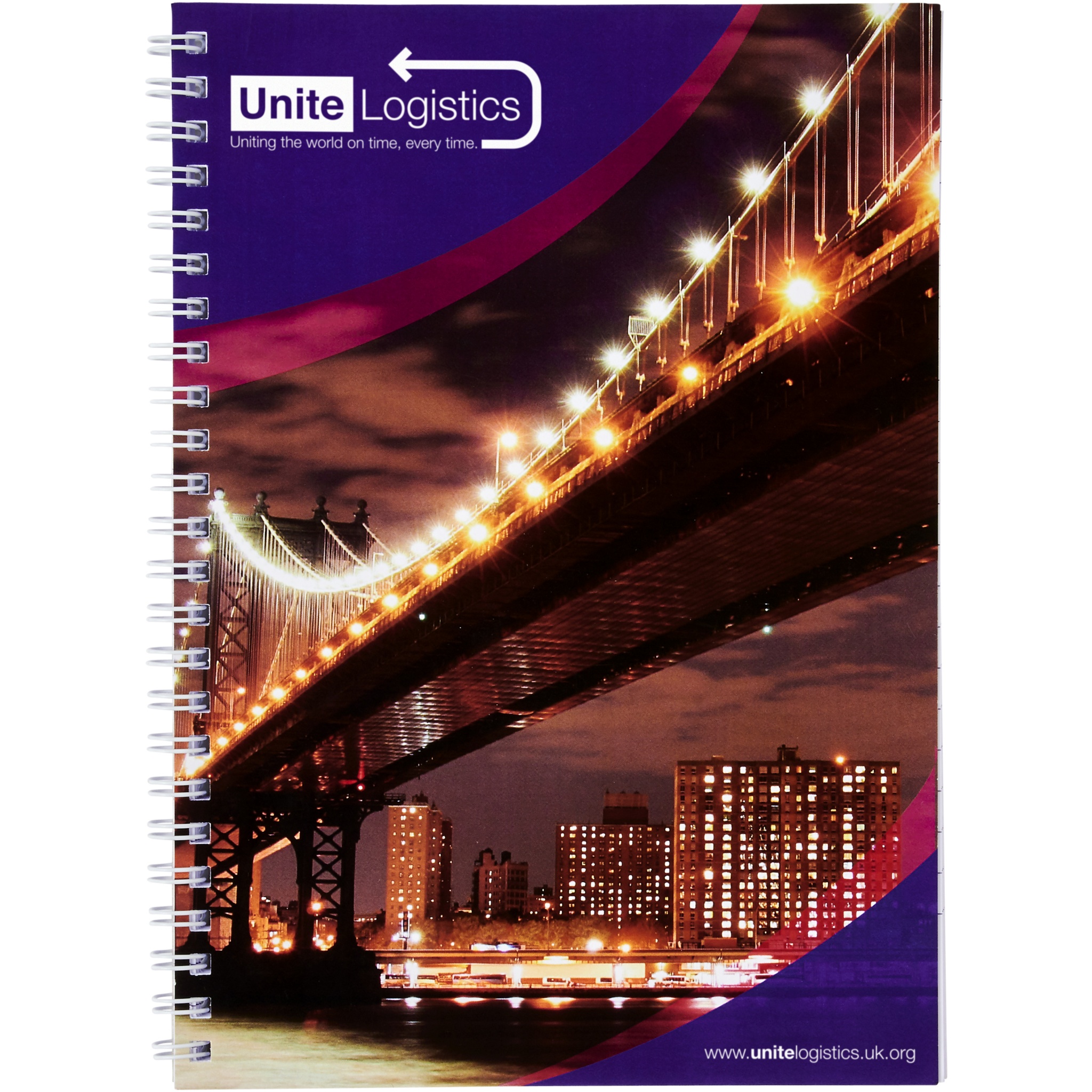 Logo trade liikelahjat mainoslahjat kuva: Desk-Mate® A4-kierremuistivihko painatetulla takakannella