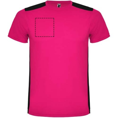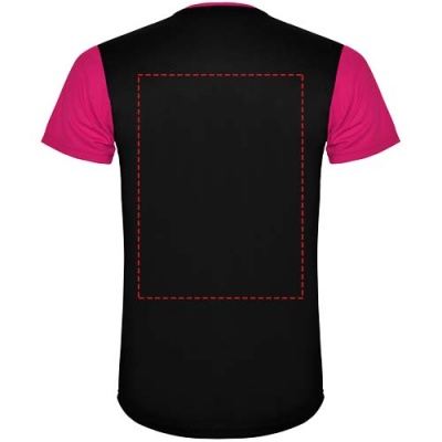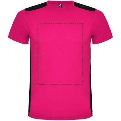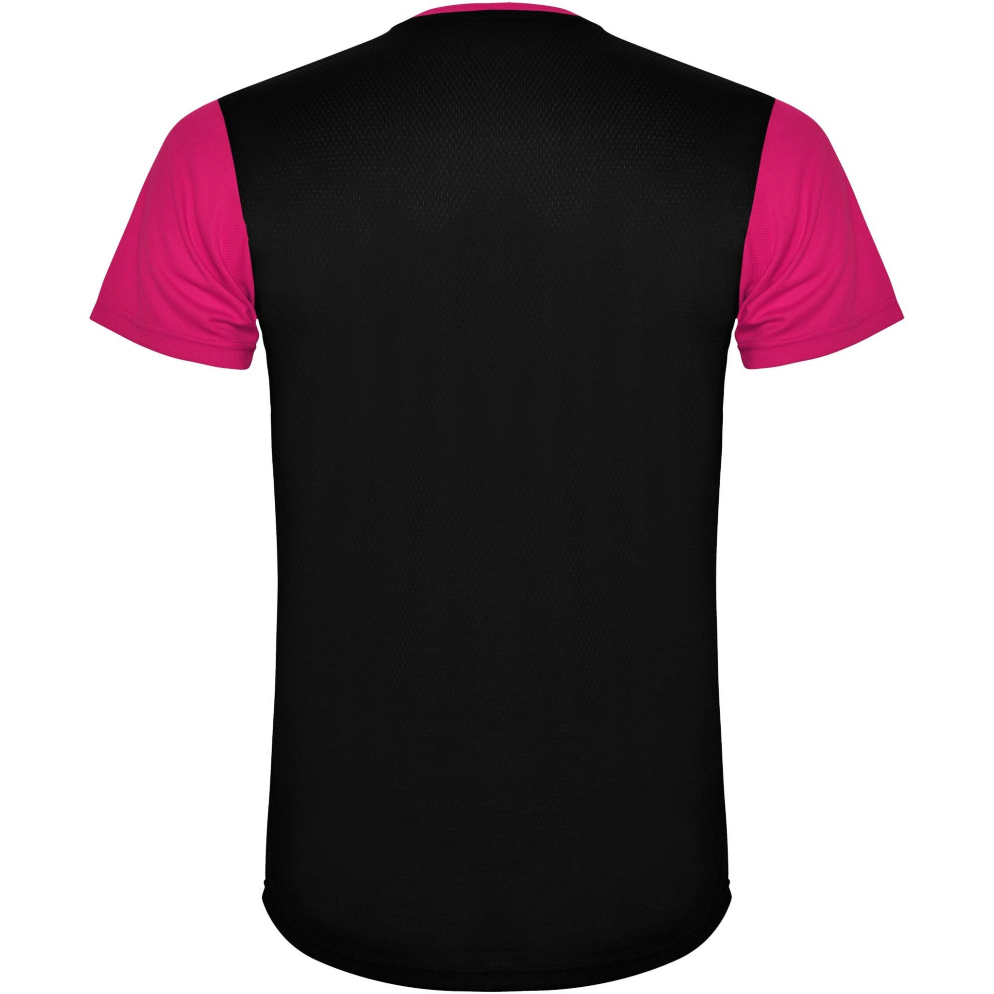 Helposti kuivuva, tekninen ja hengittävä kangas. Pyöreä kaula-aukko. Kahden polyesterikankaan yhdistelmä selässä ja olkapäissä. Bird's eye -kangas edessä ja hengittävä 3D-verkkokangas takana. Kangas, joka on suunniteltu imemään kosteutta. Sivuilla ja olkapäillä koristeellinen siksak-tikki. Selkäosa hieman pidempi. Irrotettava etiketti.