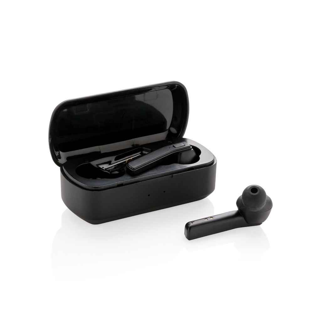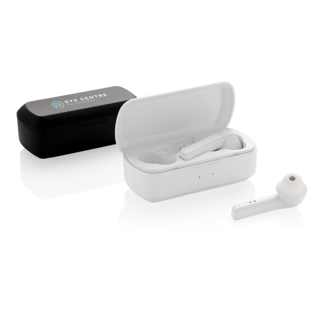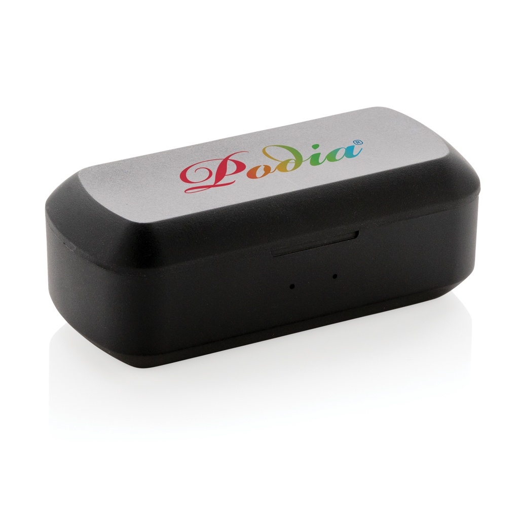 Logotrade mainostuote tuotekuva: Free Flow -TWS nappikuulokkeet latausrasiassa