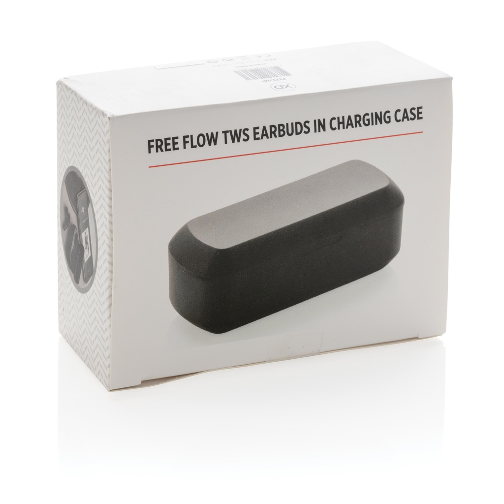 Logo trade liikelahjat tuotekuva: Free Flow -TWS nappikuulokkeet latausrasiassa