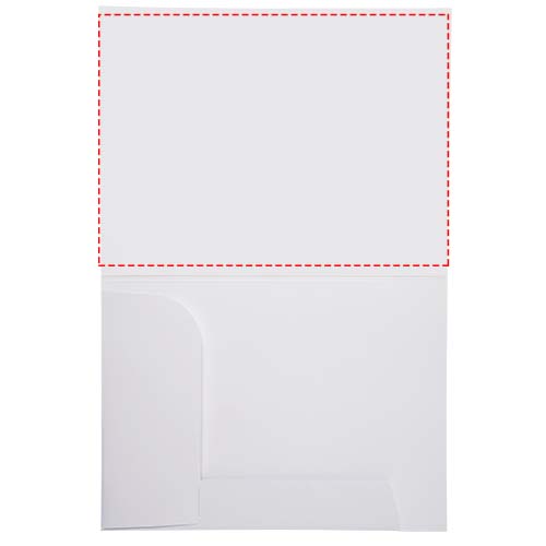 A4 350g/m2 dokumenttikansio, jossa paikka käyntikortille sisäpuolella. Kortin koko 55 x 85 mm. Täysivärinen painatus mahdollista eteen, taakse sekä etukannen sisäpuolelle.