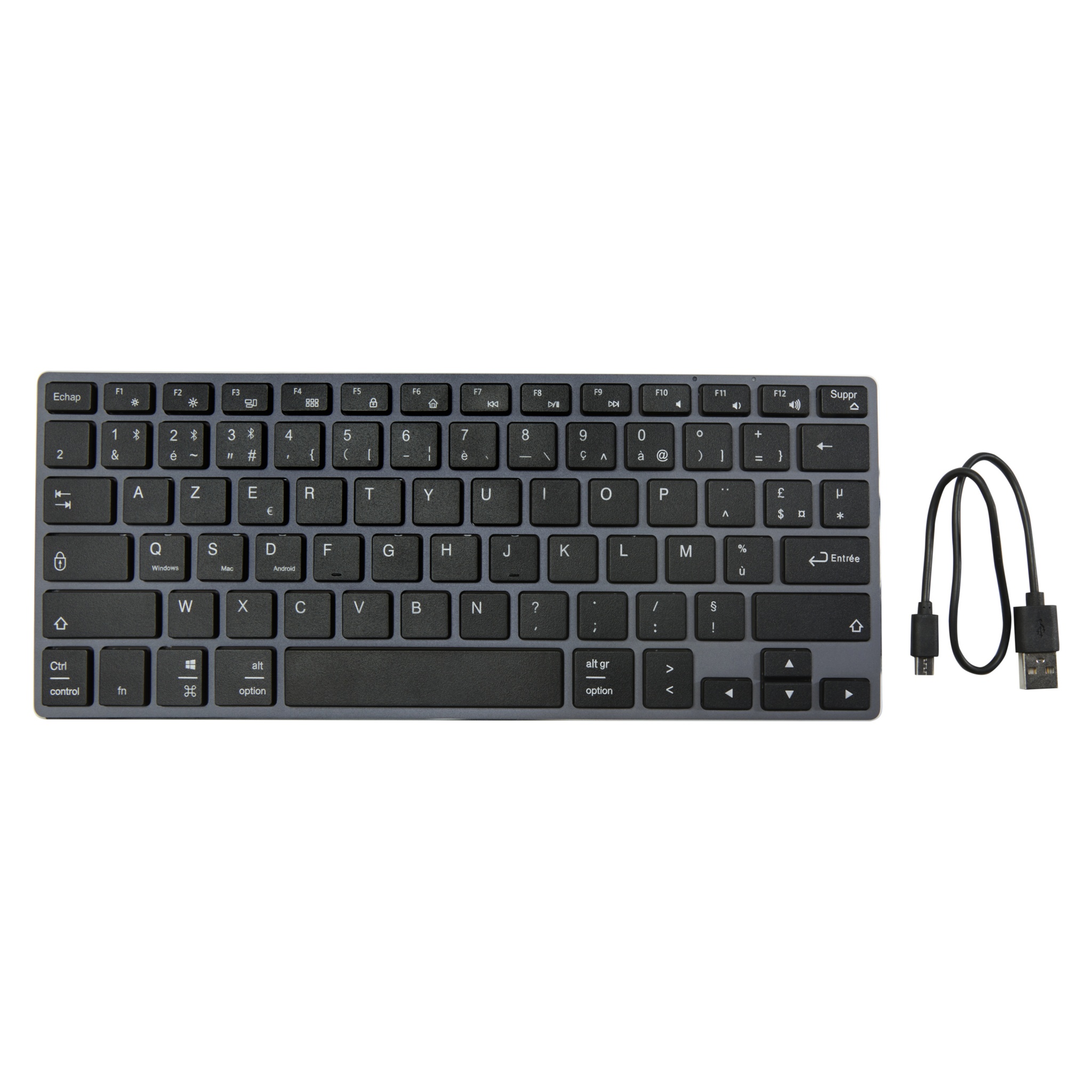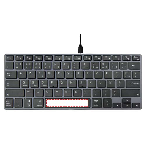 Kevyt ja silti kestävä ja tyylikäs näppäimistö (78 näppäimen AZERTY-asettelu) alumiinikotelolla. Näppäimistö tukee Bluetooth® 4.0 -tekniikkaa vakaan yhteyden ja pienen virrankulutuksen takaamiseksi, ja se on yhteensopiva pöytätietokoneiden/kannettavien, tablet-laitteiden, älypuhelinten, äly-TV:n ja muiden Bluetooth®-laitteiden kanssa. Toimintaetäisyys ulottuu 10 metriin, ja näppäimistössä on 350 mAh:n sisäänrakennettu ladattava akku. Toimitetaan korkealaatuisessa voimapaperipakkauksessa, jossa on värikäs tarra.
