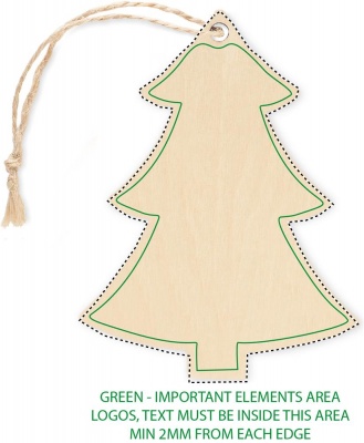 Vanerista valmistettu joulukoriste juuttiköydellä. Sublimaatiopainatus ei tue valkoisen värin painatusta.
