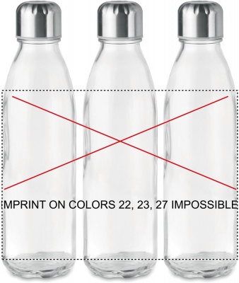 Lasinen 650 ml juomapullo, ruostumattomasta teräksestä valmistetulla korkilla. Tuote ei sovellu käytettäväksi hiilihapollisilla nesteillä, vuoto vapaa.