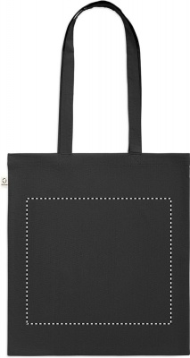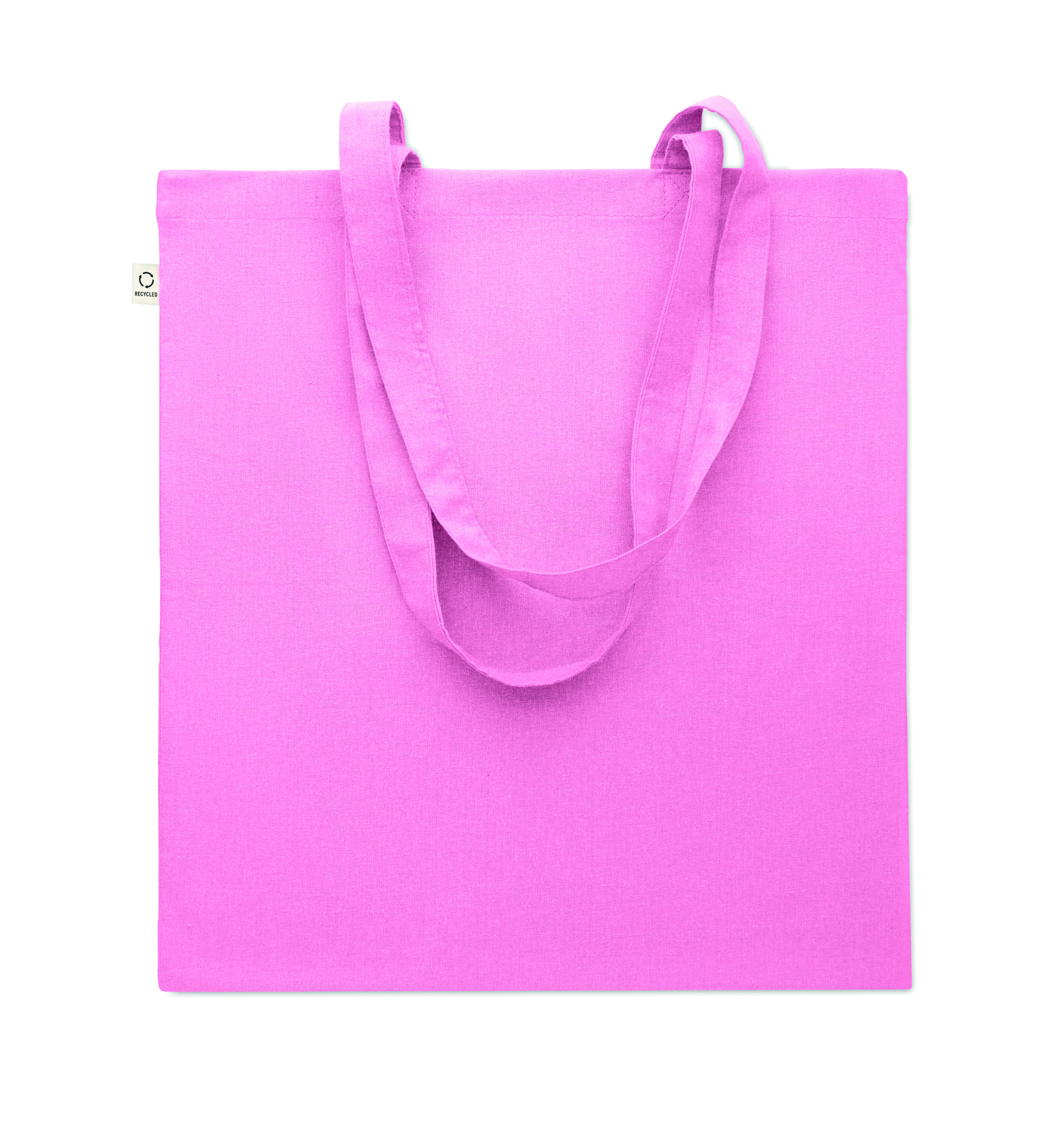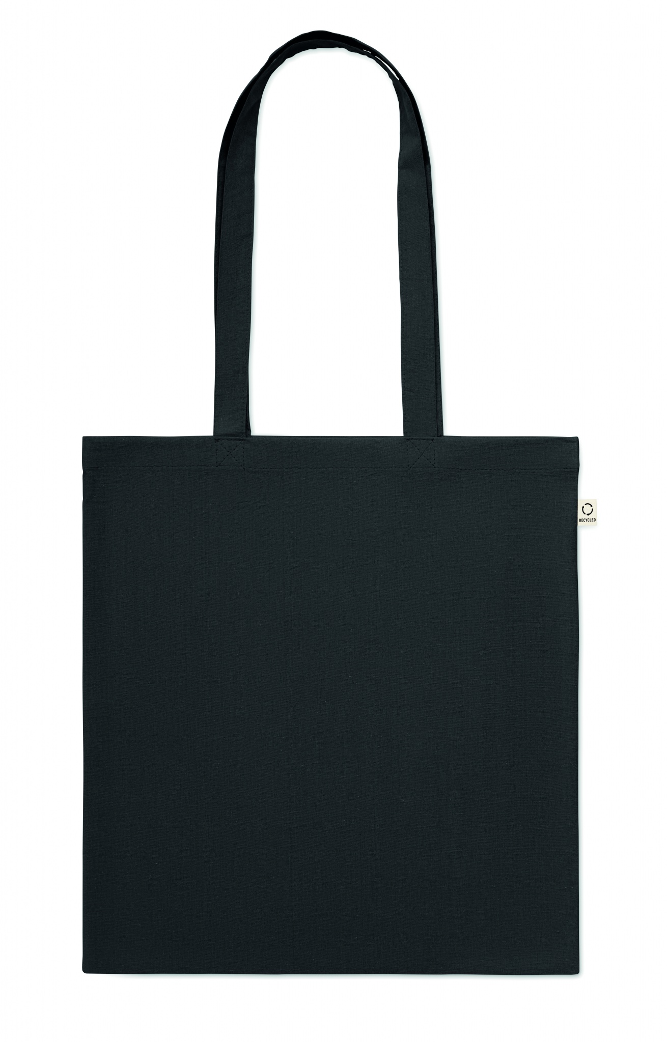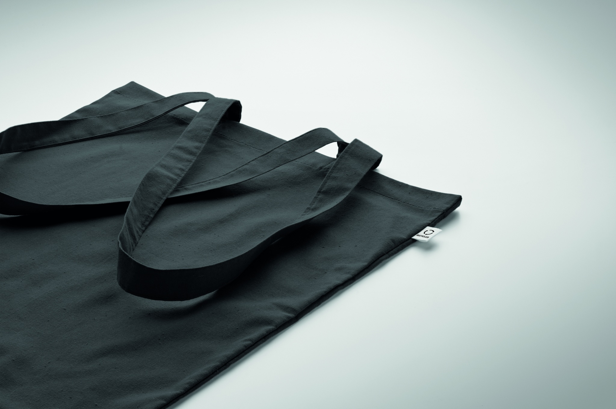 Kierrätetty ostoskassi (70 % kierrätettyä puuvillaa ja 30 % RPET) pitkällä kahvalla. 140 g/m².