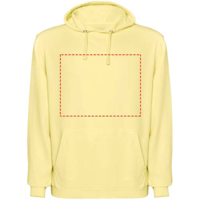 Unisex-huppari happopesuviimeistelyllä. 2 x 1-resori hihansuissa ja helmassa. Huppu vuorattu samansävyisellä yksinkertaisella jerseyllä, yhteensopivat litteät nauhat. Sävy sävyyn -peittotikkaus pääntiessä. Kengurutasku.