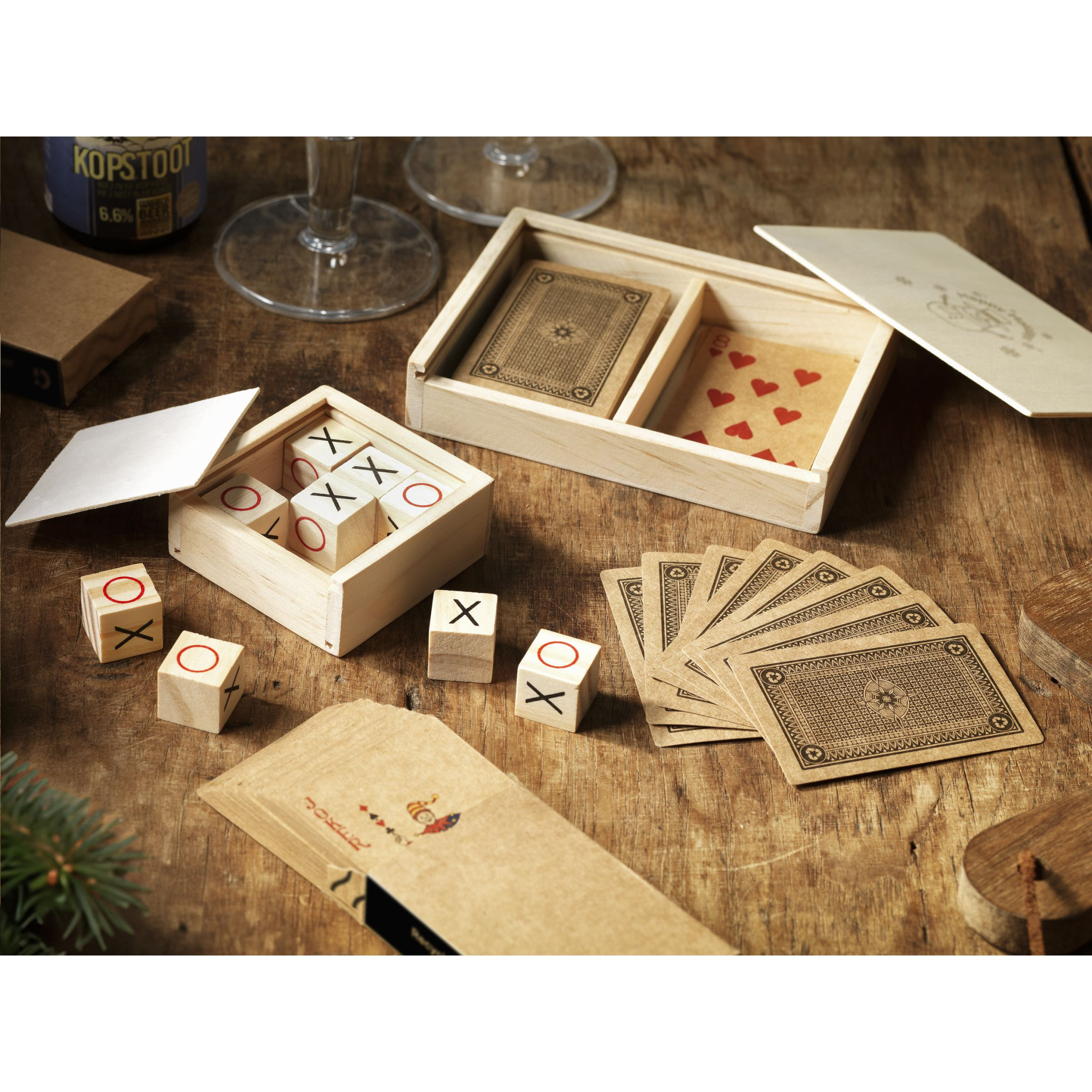 Vau! Kaksi korttipakkaa korkealaatuisesta kierrätetystä voimapaperista (250 g/m²). Tämä peli koostuu 52 pelikortista ja 2 jokerista. Säilytetty kierrätetystä kartongista valmistetussa laatikossa. Näiden korttien takapuolella on sama vakiokuva. Nämä korttipakat toimitetaan mäntypuusäilytyslaatikossa, jossa on liukuva kansi. - Tämä tuote on painettu tavallisella joulukuviolla. Valittavana 6 erilaista mallia kuvien mukaisesti. Suunnittelua ei ole mahdollista muokata.