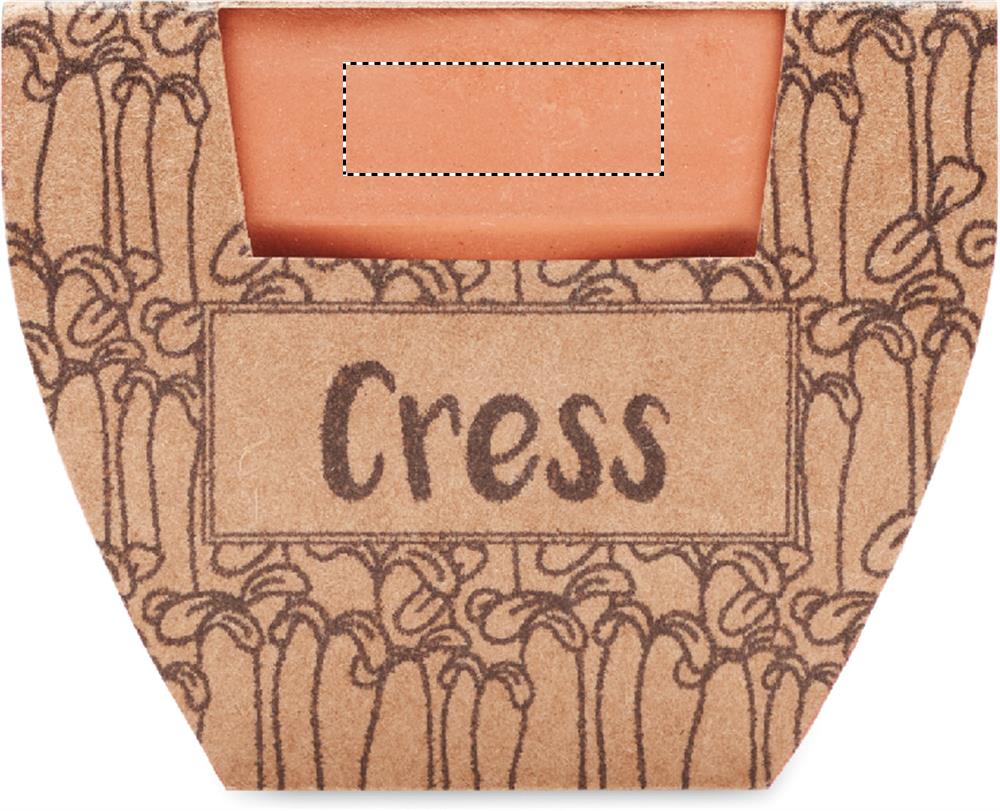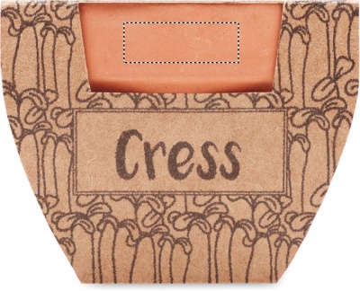 Pieni savinen terrakottaruukku, joka sisältää krassin siemeniä. Ei myynnissä Yhdistyneessä kuningaskunnassa. Mukana multa-tabletti.