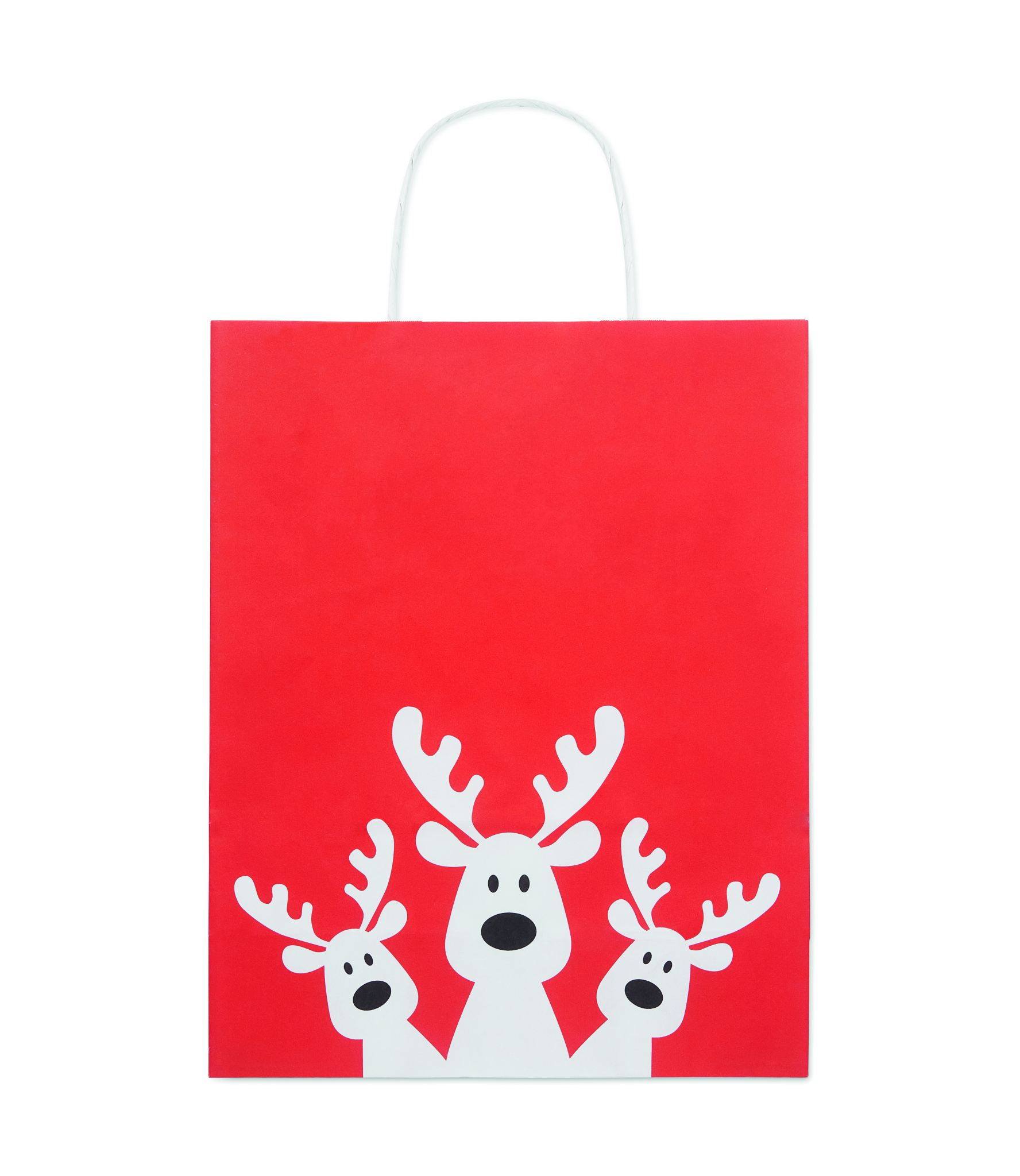 Jouluinen keskikokoinen paperikassi (50 % kierrätyspaperia). 90 gr/m². Valmistettu EU:ssa.