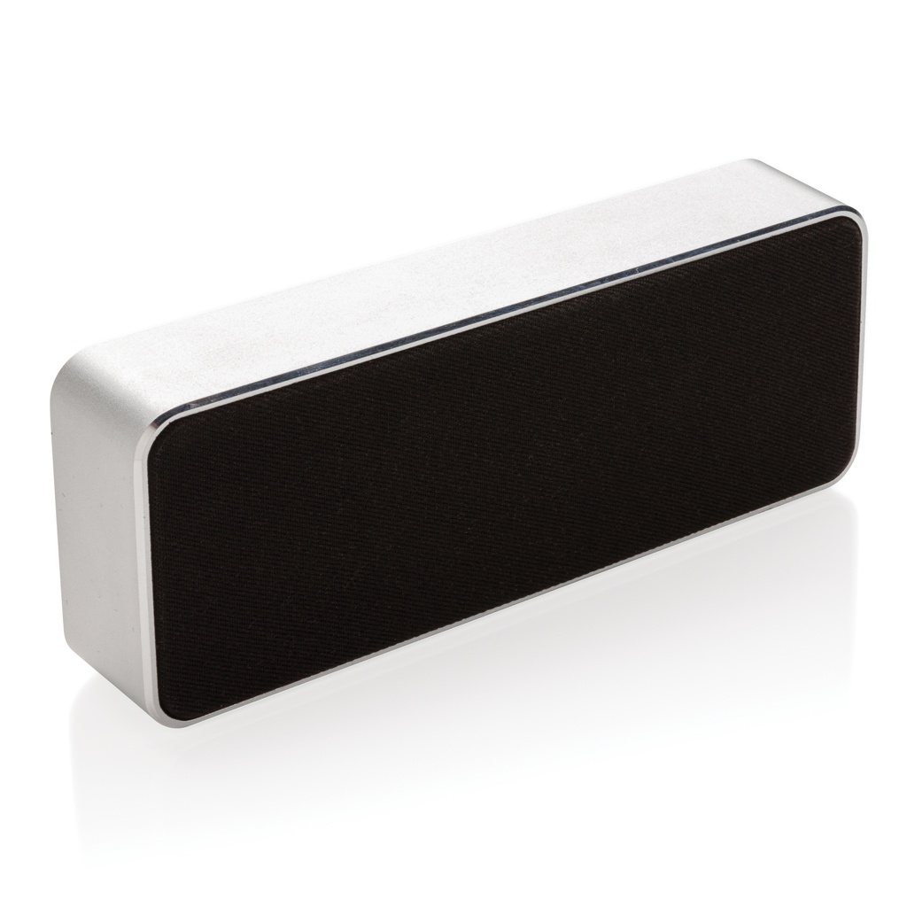 Ylellinen 3 W:n langaton kaiutin, jossa alumiini, kangas ja bambu yhdistyvät tyylikkääksi tuotteeksi. Langattomassa kaiuttimessa on BT 5.0, jonka käyttöetäisyys on jopa 10 metriä. Toistoaika jopa 4 tuntia, ja lataus kestää 1,5 tuntia. Sisäänrakennettu subwoofer tehostaa bassoa. Mukana PVC-vapaa TPE-micro-USB-johto lataamista varten. Rekisteröity design®