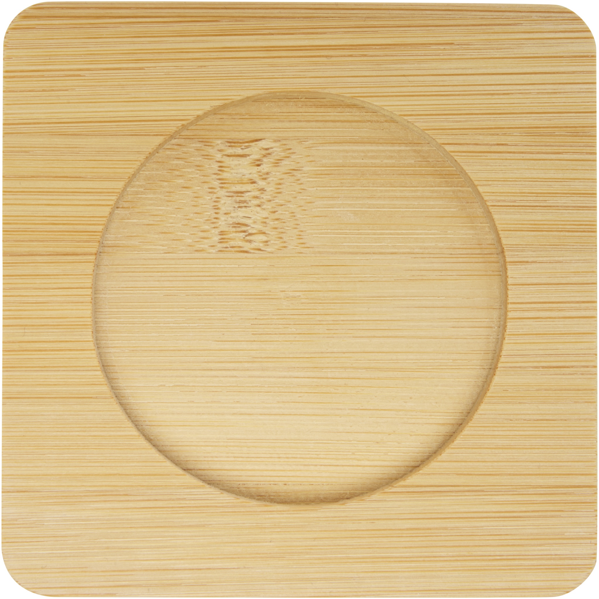 Kaksi kaksiseinäistä lämpölasia ja bambualuset. Käytetty bambu on peräisin kestävistä, ympäristöystävällisistä ja sosiaalisesti vastuullisista lähteistä. Kaksinkertaisen borosilikaattilasin ansiosta juoman lämpötila säilyy pitkään. Tilavuus on 250 ml. Lasinalusen koko: 10 x 10 x 1 cm.
