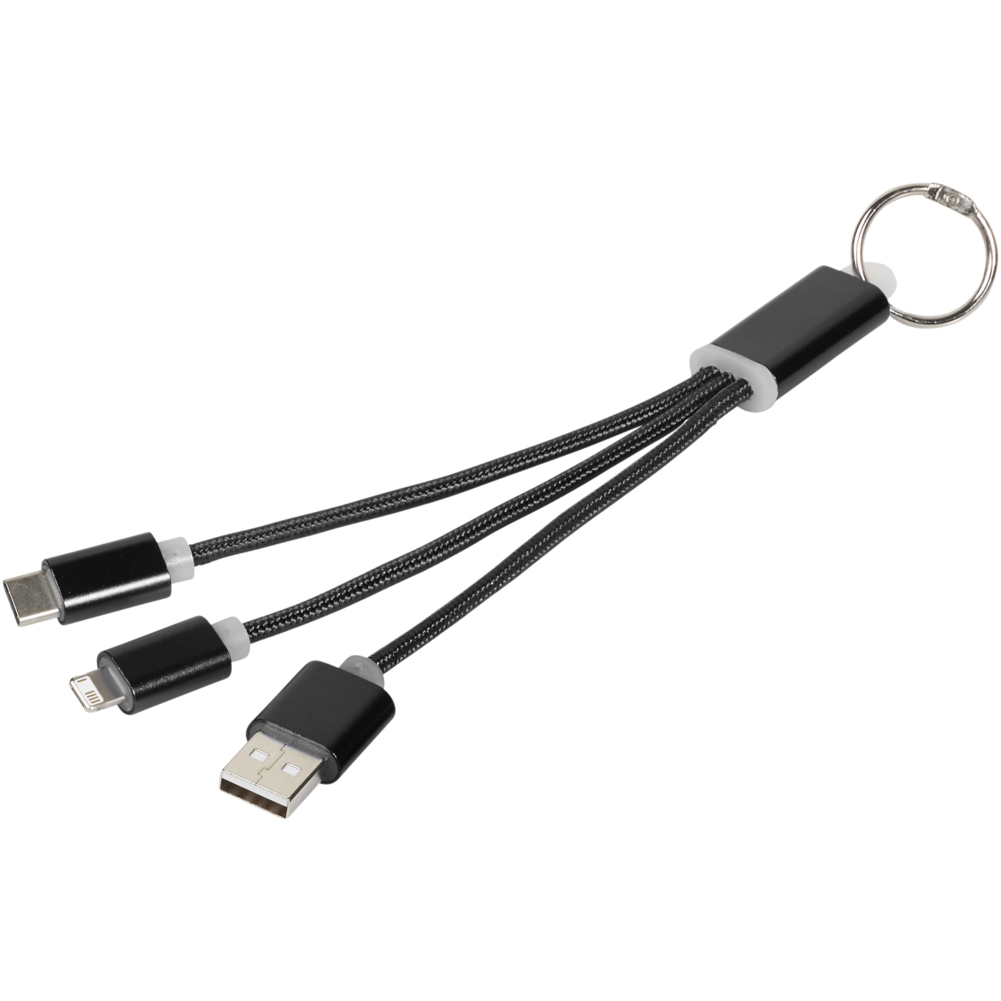 3-in-1 latauskaapeli avainrenkaalla. 3-in-1-latauskaapeli avainrenkaalla, jossa on 1 C-tyypin, 1 USB A-tyypin, sekä 2-in-1 kaksoisyhteensopivat päät sekä Apple iOS- että Android-laitteisiin. Mukana avainketju. Ladataksesi Applen laitteita, käytä sen puolen piuhaa jossa ei ole pinnejä, ja ladataksesi Android-laitteita, käytä sen puolen piuhaa jossa on pinnit.