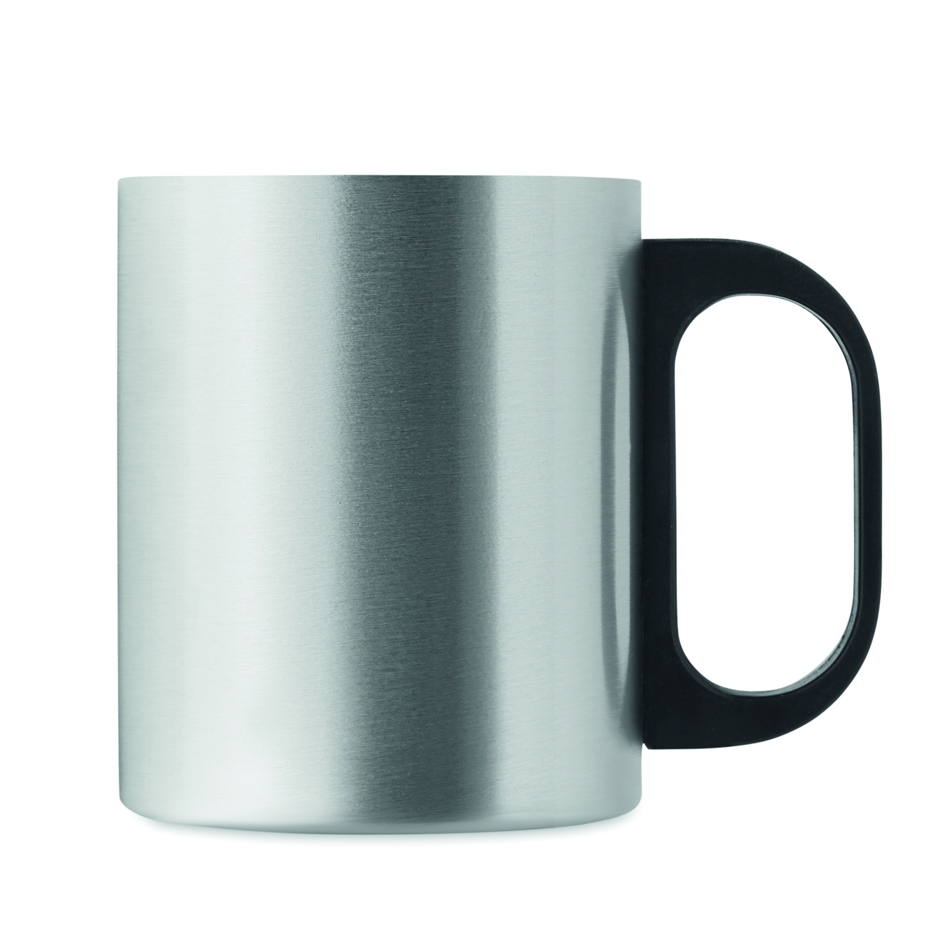 Kaksiseinäinen ruostumattomasta teräksestä valmistettu 300 ml muki PP-kahvalla.