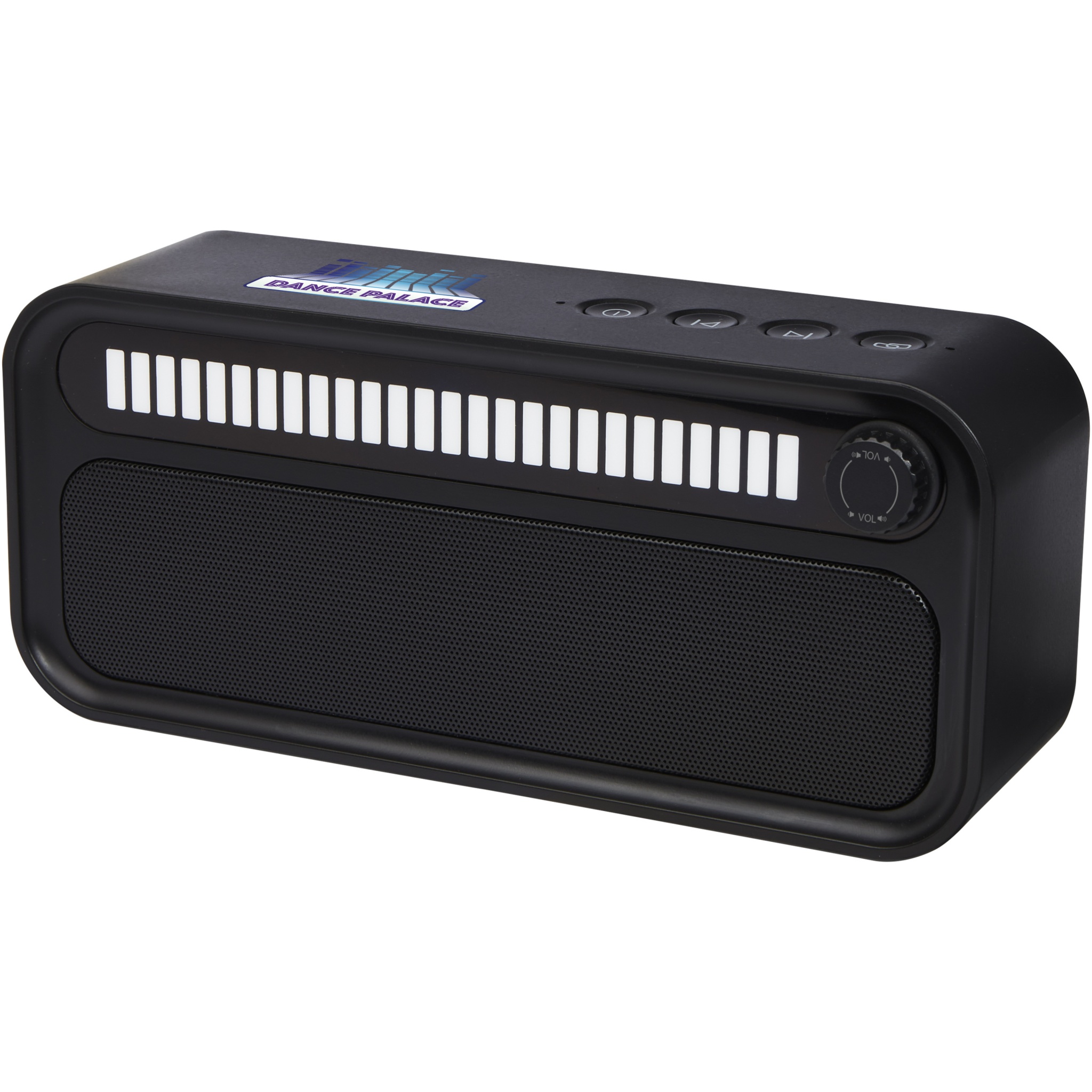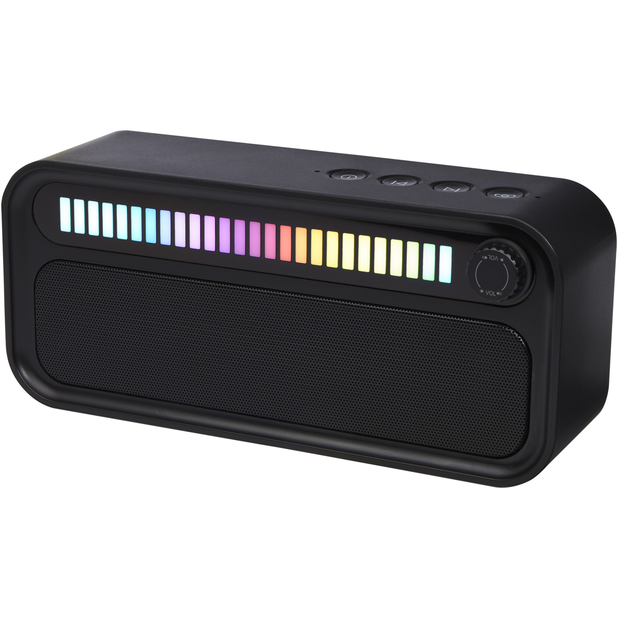 Trendikäs Music Level on 5 W:n Bluetooth®-kaiutin, jossa on RGB-tunnelmavalo. Se luo tunnelmaa huoneeseen ja antaa hyvän äänikokemuksen. Sisäänrakennettu 1200 mAh:n akku mahdollistaa jopa 2,5 tunnin toistoajan täydellä äänenvoimakkuudella RGB-tunnelmavalon ollessa päällä. Latausaika on 3 tuntia. Bluetooth® 5.3, toimintasäde jopa 10 metriä. Sisäänrakennetut musiikkisäätimet, mikrofoni ja vastaustoiminto hands free -käyttöä varten. Sisältää TPE:stä valmistetun USB-A- ja Type C -latauskaapelin. Toimitetaan korkealaatuisessa voimapaperipakkauksessa, jossa on värikäs tarra.