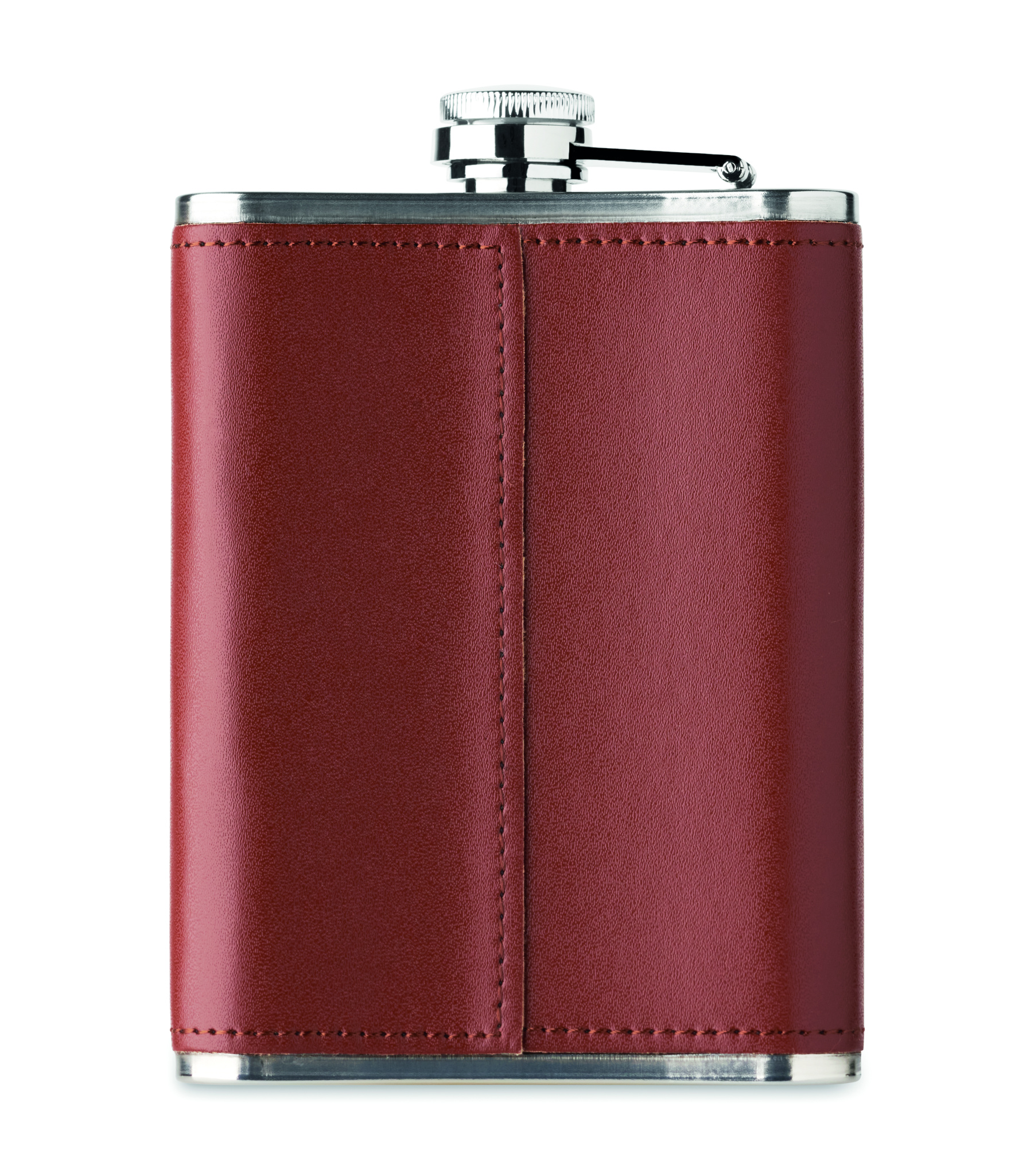 Ohut taskumatti ruostumattomasta teräksestä, PU-nahkakannella. Tilavuus 200 ml.