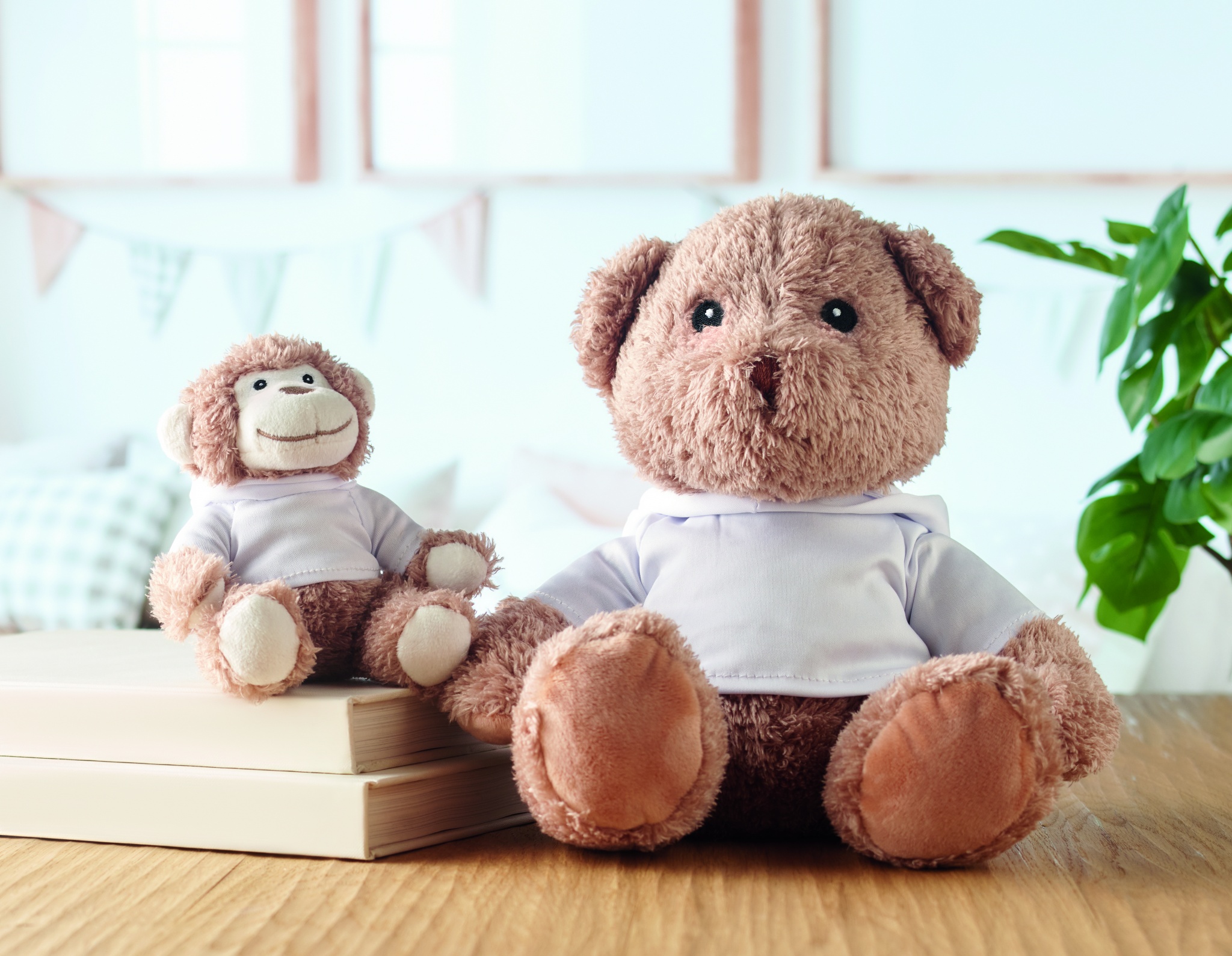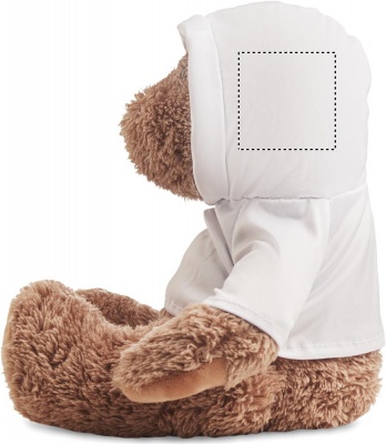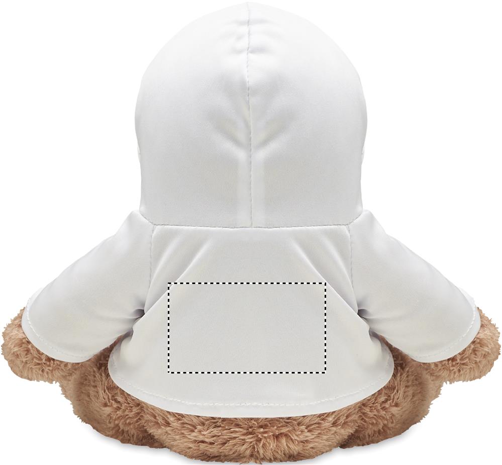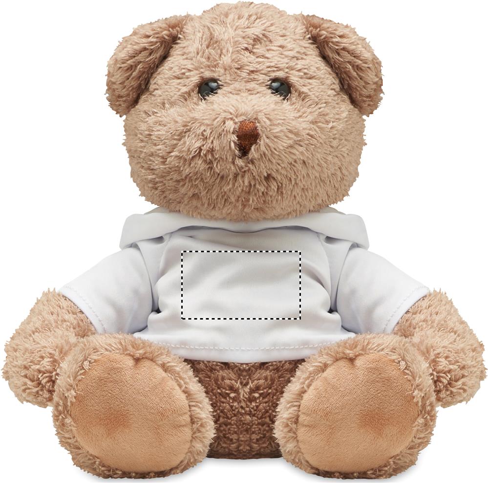 Iso nalle pehmolelu, jolla on hupullinen paita. Ihanteellinen sublimaatiopainatusta varten.