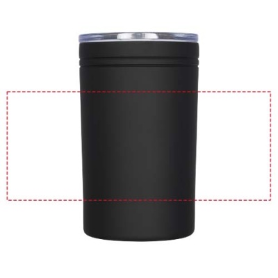 Kaksiseinäinen termosrakenne. Kirkas, painettava kansi, joka sulkeutuu liu'uttamalla. Toimii termospullona tai -mukina. Tilavuus 330 ml.
