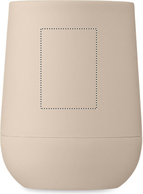 Kaksiseinämäinen juomalasi PP:tä, liukukansi suukappaleen kansi PS ja ABS. Tilavuus: 300 ml.