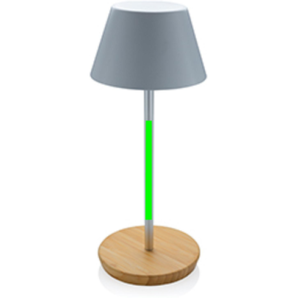 Ylellinen pöytävalaisin, valmistettu RCS-sertifioidusta kierrätetystä ABS-muovista, kierrätetystä alumiinista ja FSC-sertifioidusta 100% bambusta. IPX 4 vedenkestävä . Kierrätetyn materiaalin kokonaismäärä: 40% tuotteen kokonaispainosta. RCS-sertifiointi takaa täysin sertifioidun kierrätysmateriaalien toimitusketjun. Pöytävalaisin toimii yhdellä latauksella jopa 12 tuntia ja sen voi ladata uudelleen 2 tunnissa. Siinä on luokan A 1800 mAh akku ja tyyppi C -syöttö (5V/1A). Siinä on kaksi toimintoa (lämmin valo ja valkoinen valo), jotka voidaan säätää kosketusanturin avulla jalustassa. Ladattavissa USB-C:n kautta. Pakattu FSC®-mix pakkaukseen.