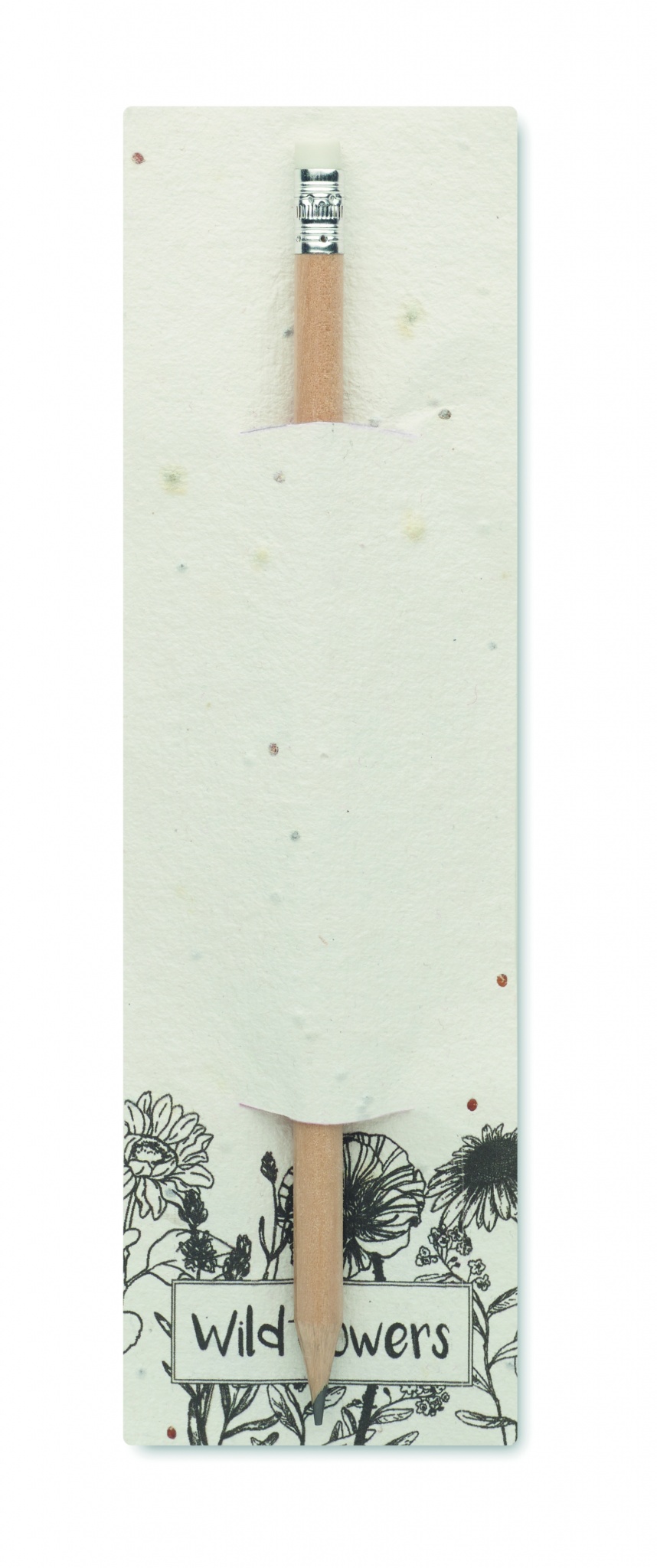 Luonnonpuusta valmistettu lyijykynä, jossa on pyyhekumi. Toimitetaan siemenpaperipussissa ( luonnonkukkia).