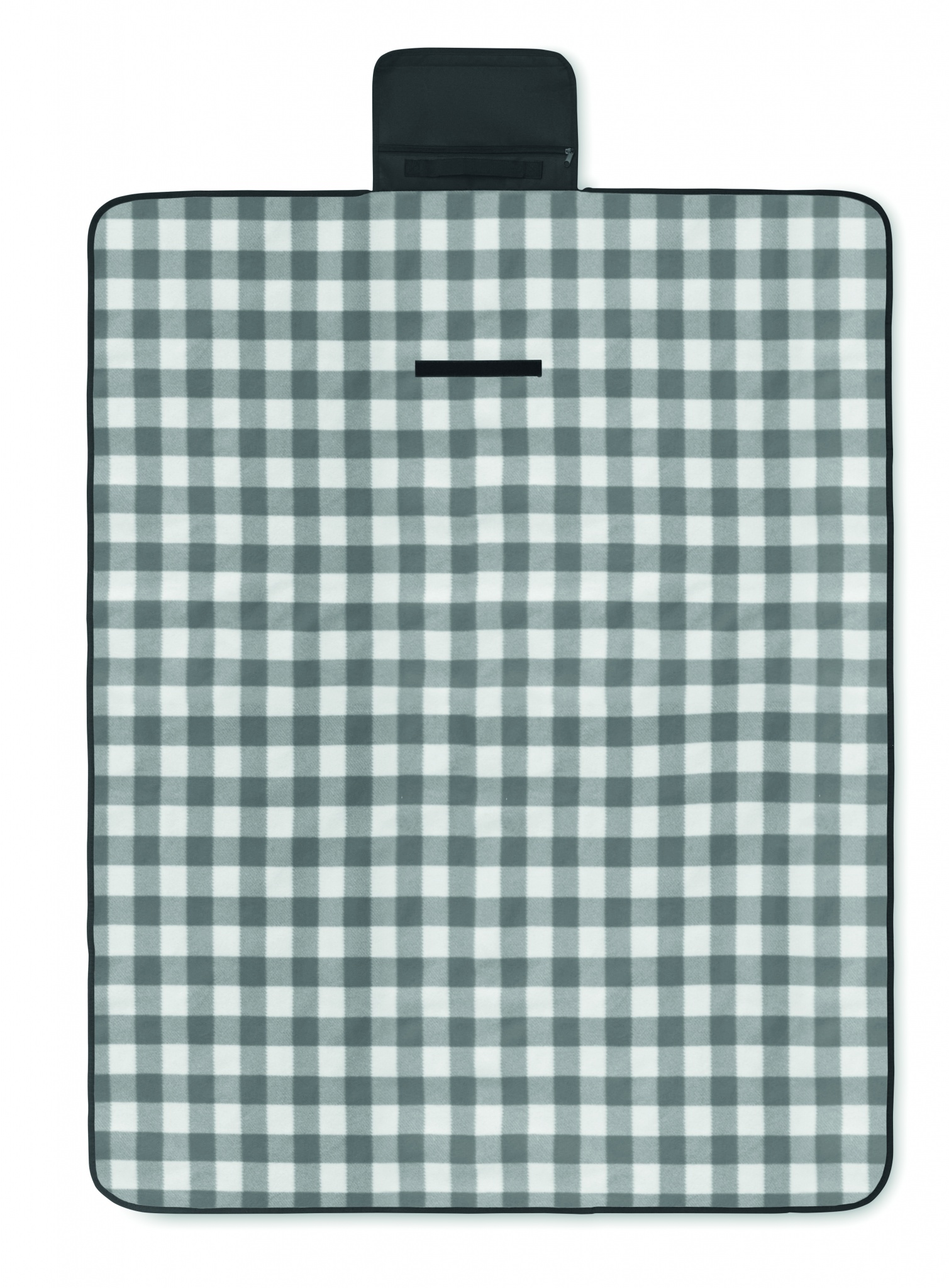 Taitettava RPET 150 gr/m² polarfleece piknik-peitto, jonka kääntöpuoli on vedenkestäväksi pinnoitettua PEVA. Peitossa vetoketjullinen etutasku ja lyhyt kantohihna.