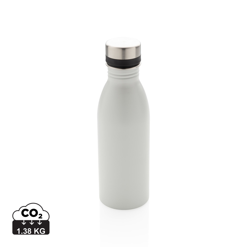 Tämä täydellisenkokoinen ja kevyt, uudelleen käytettävä pullo on valmistettu kestävästä, ruostumattomasta teräksestä. Tiivis ja täydellinen jokapäiväiseen käyttöön nestetasapainon ylläpitämiseksi. Suositellaan vain kylmälle vedelle. Monissa eri väreissä. Luonnonvalkoisen värinen pullo on PMS-värissä Cool Grey 1. Sisältö: 500 ml.
